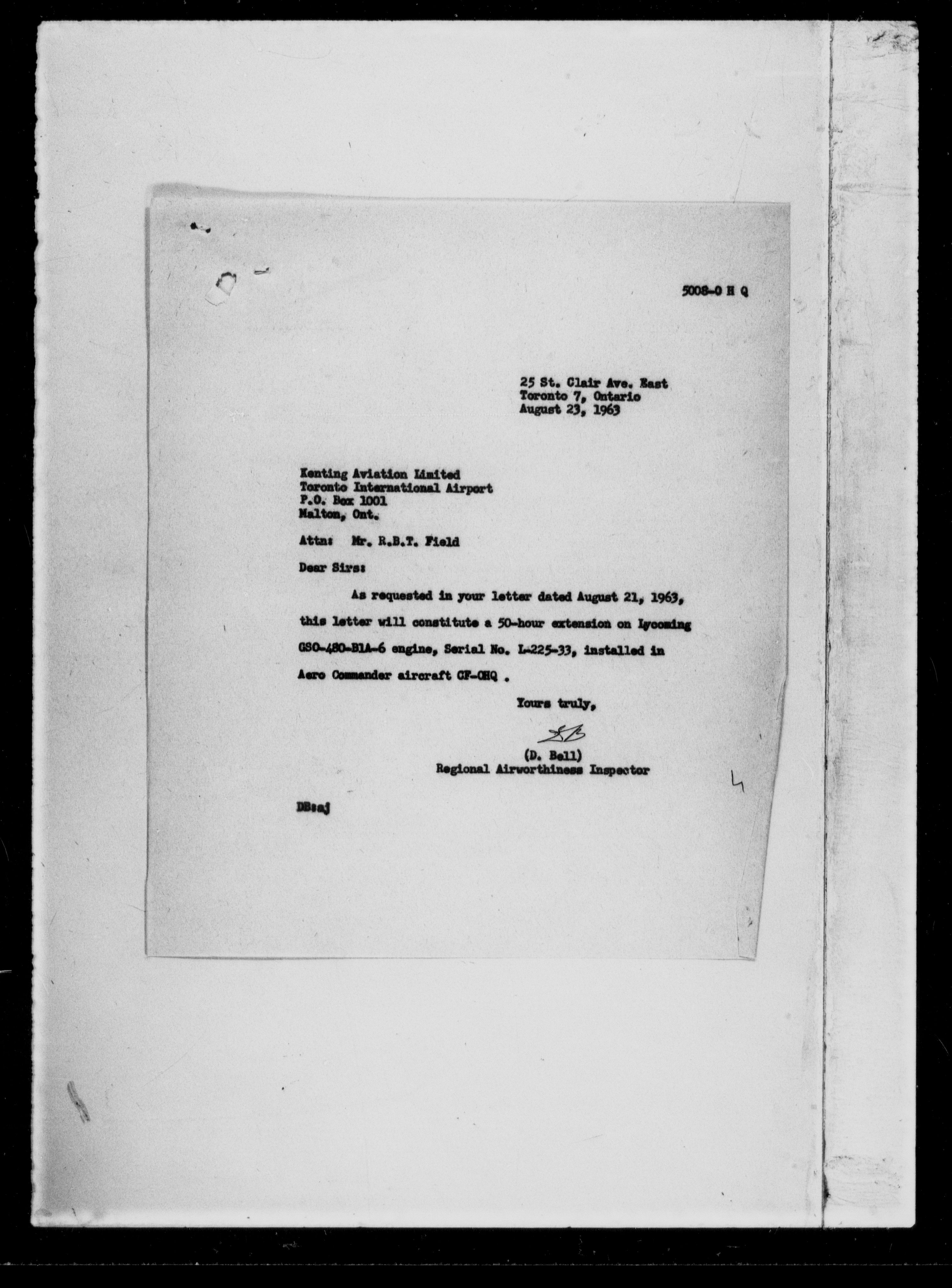 Department of Transport : Civil aircraft registration, inspection and operation files, block 5008, 1920-1986 - 7306