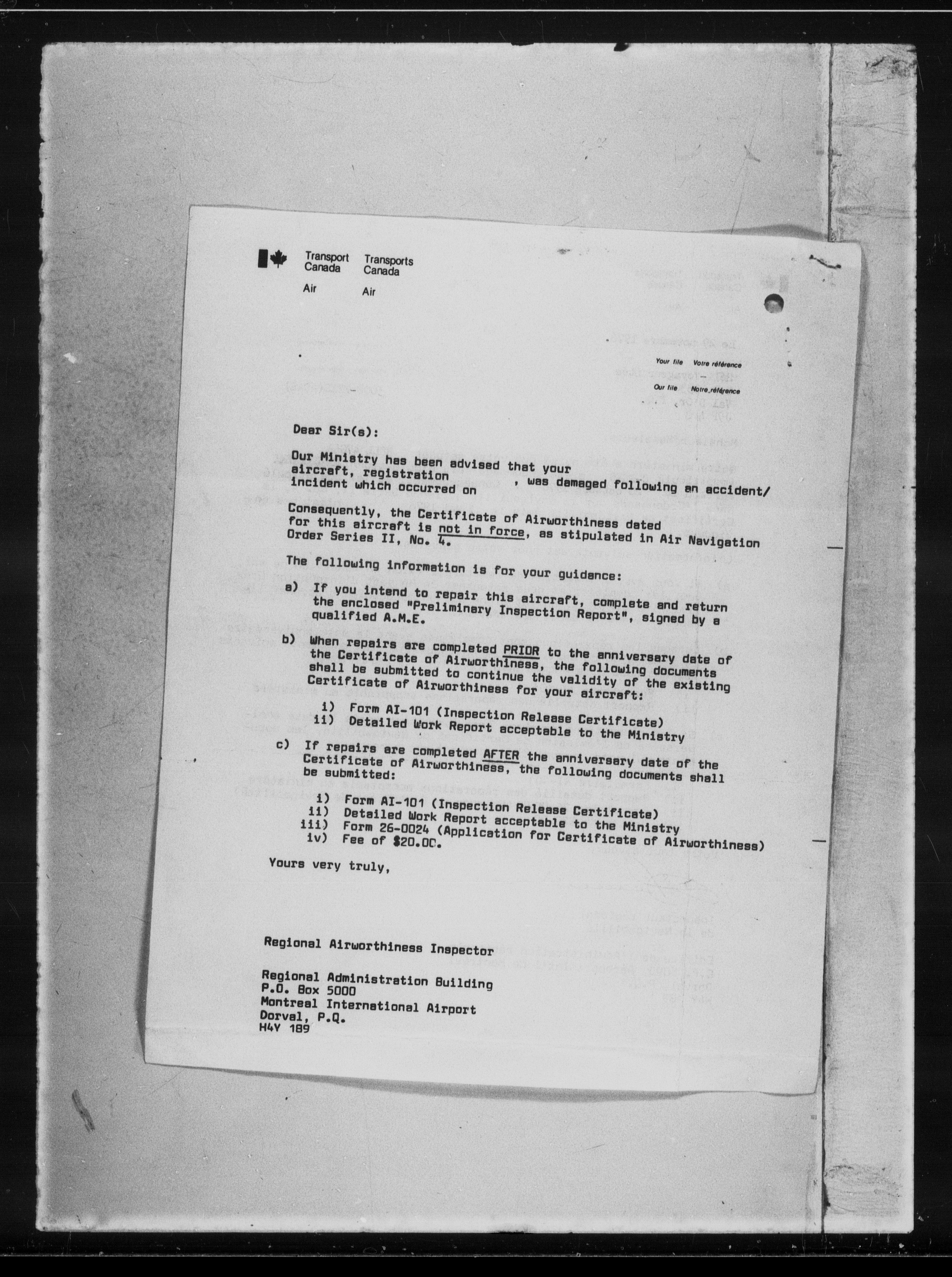Department of Transport : Civil aircraft registration, inspection and operation files, block 5008, 1920-1986 - 7309