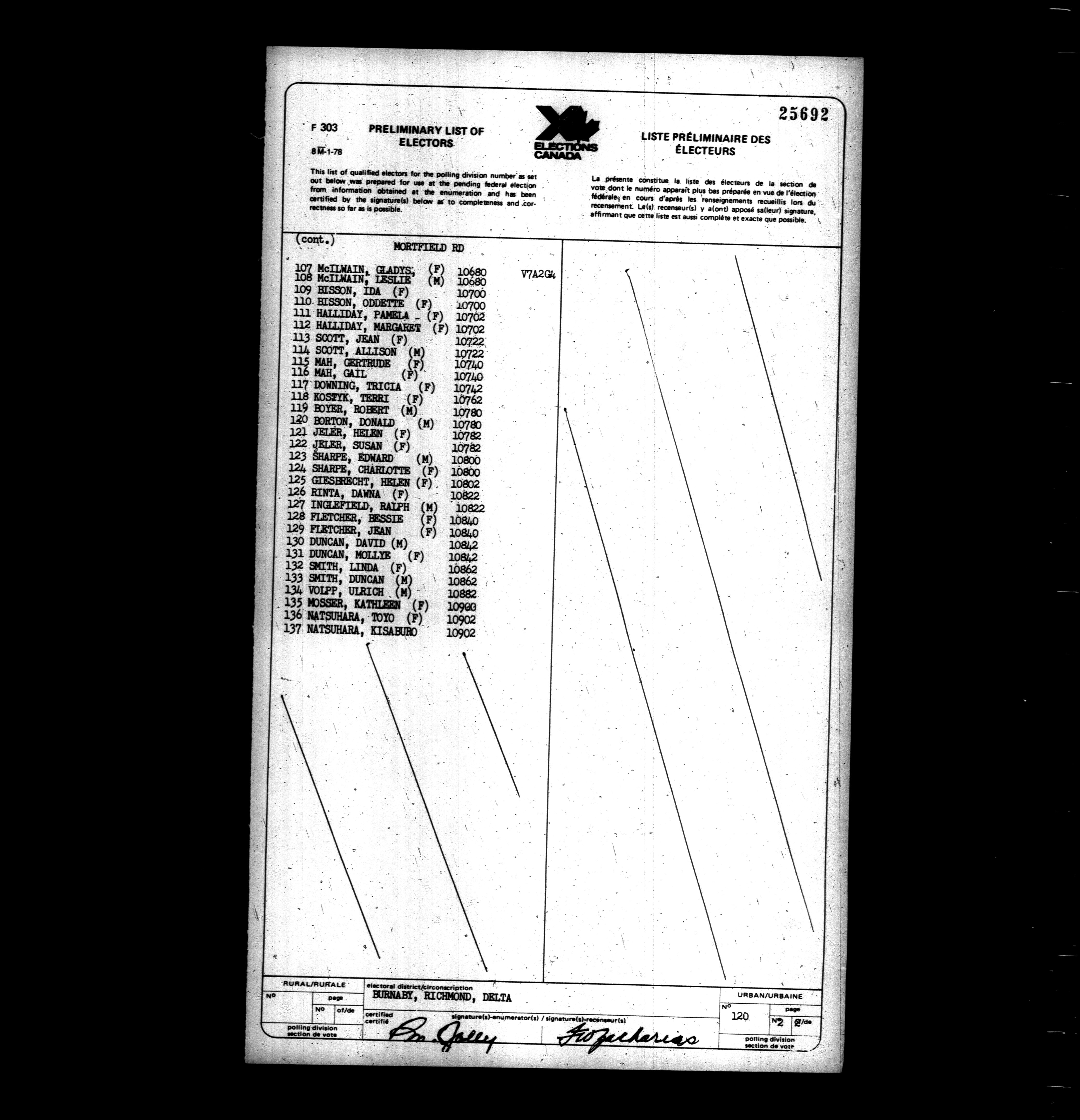 Voters' lists Nova Scotia and British Columbia, 1979 - 731
