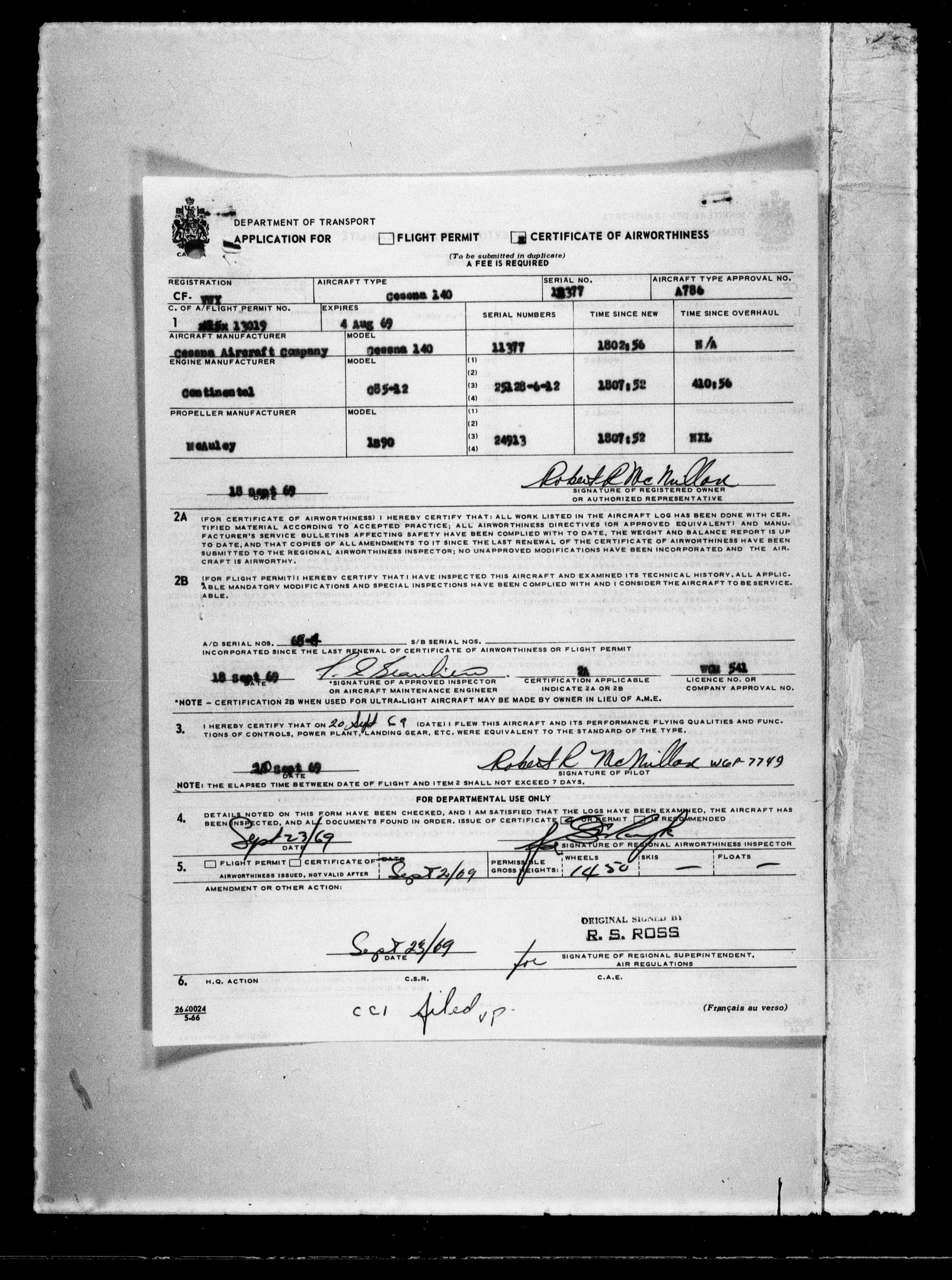 Department of Transport : Civil aircraft registration, inspection and operation files, block 5008, 1920-1986 - 7318