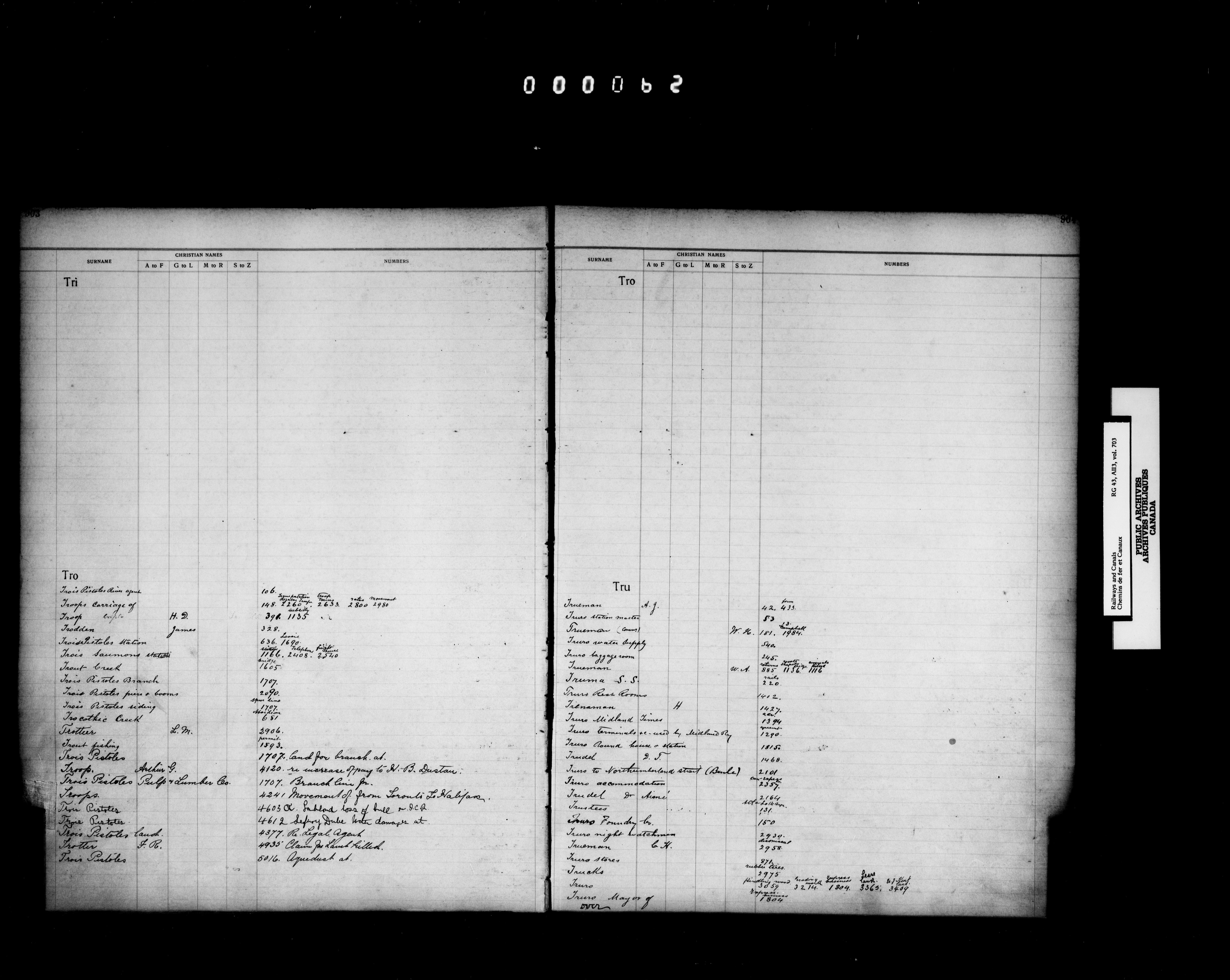 Railway Branch, Registers, Indexes and Journals, 1867-1936 - 7320