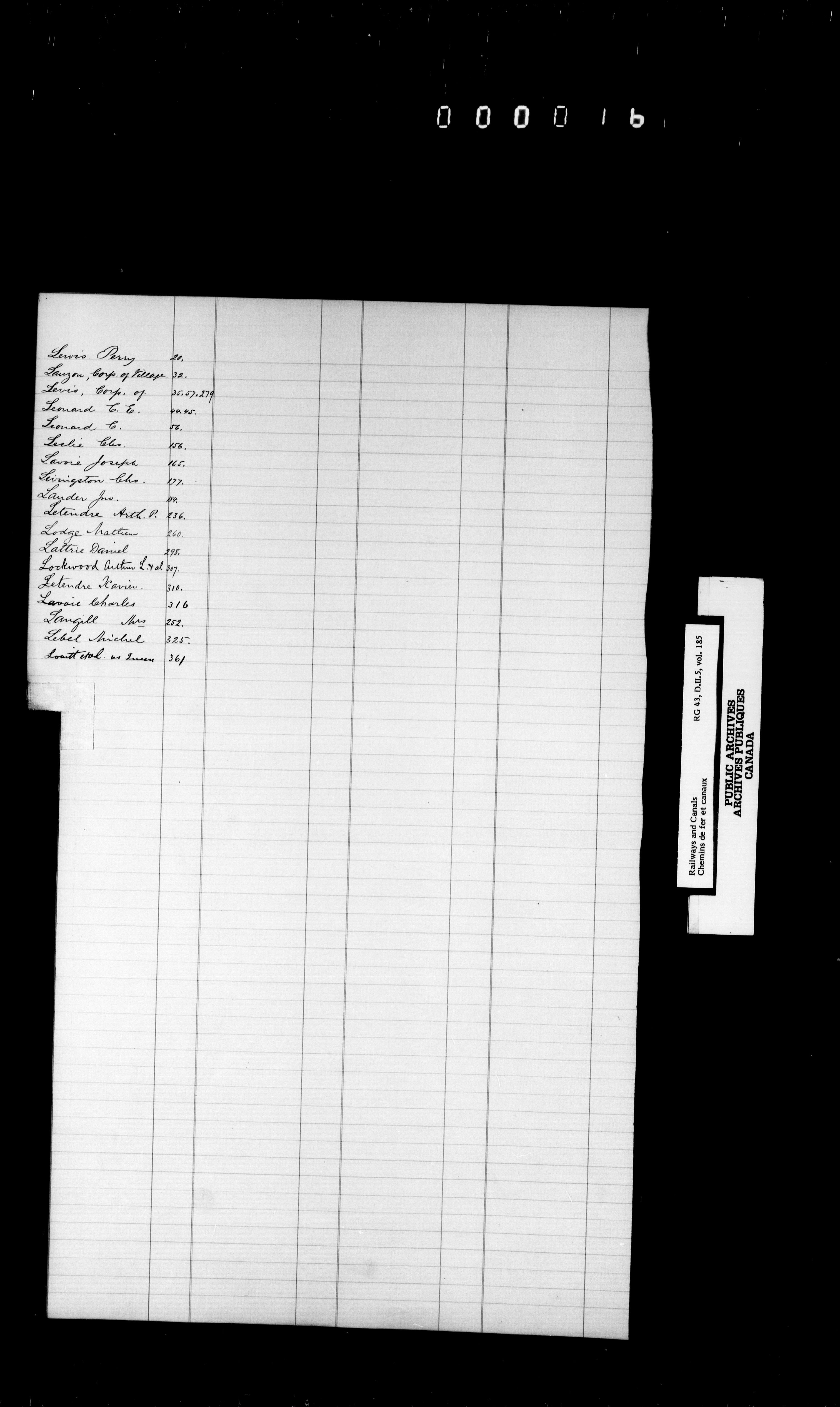 Department of Railways and Canals, Legal records : registers and indexes : T-7325