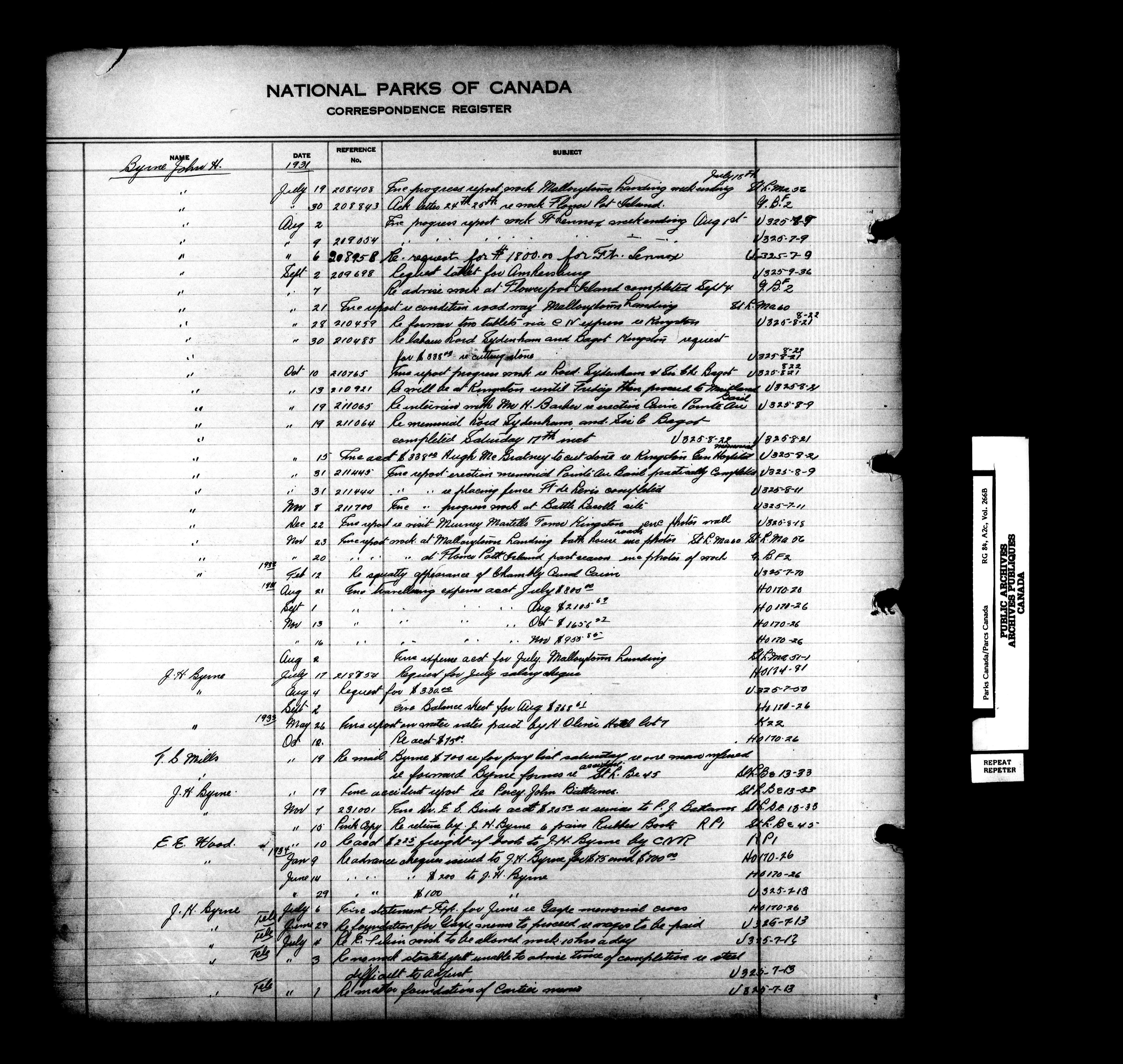 Dominion Parks Branch central registry system : Correspondence registers covering the remaining years of the Dominion Parks Branch in the old Department of the Interior, 1919-1937 - 7328