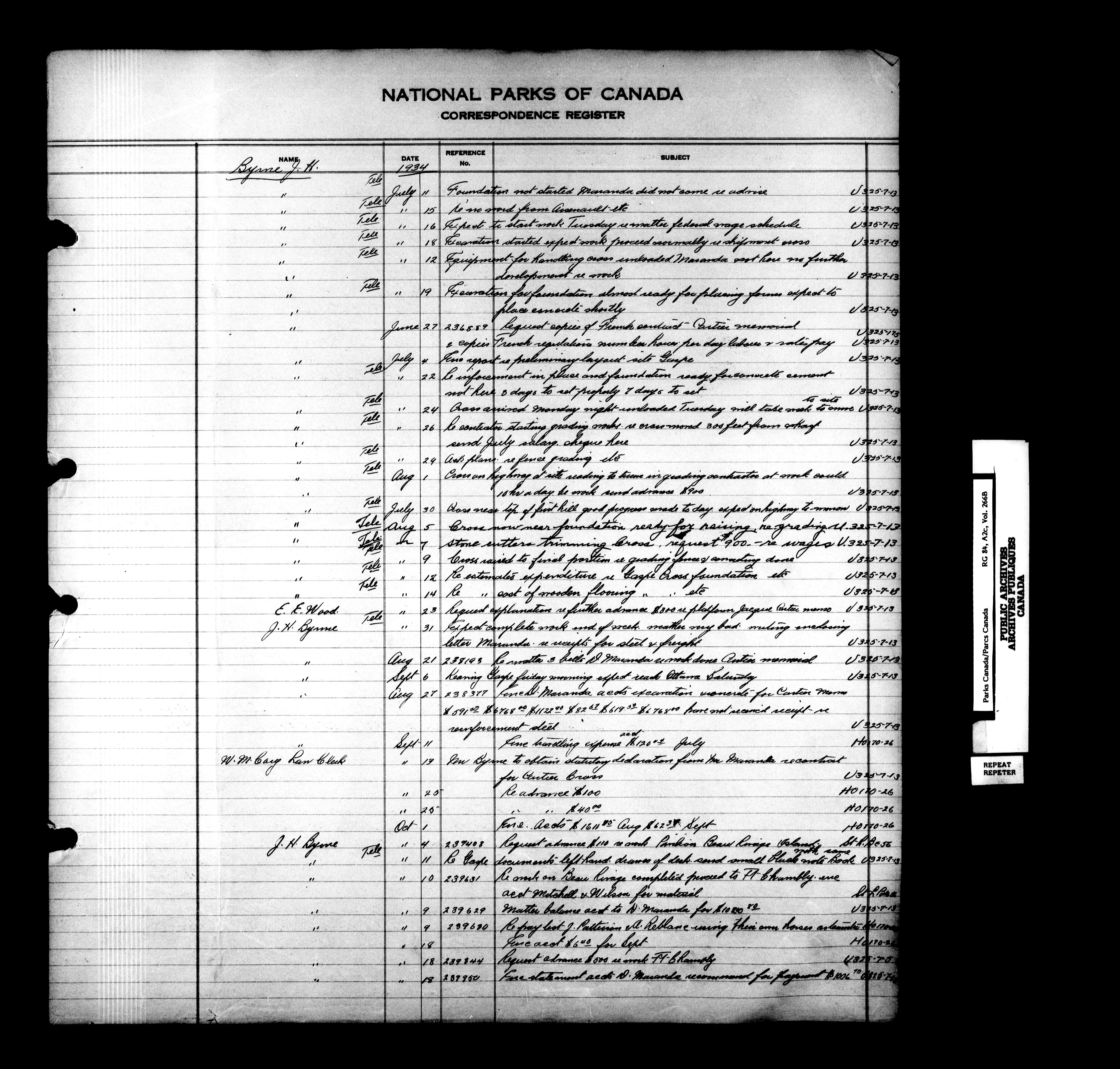 Dominion Parks Branch central registry system : Correspondence registers covering the remaining years of the Dominion Parks Branch in the old Department of the Interior, 1919-1937 - 7328