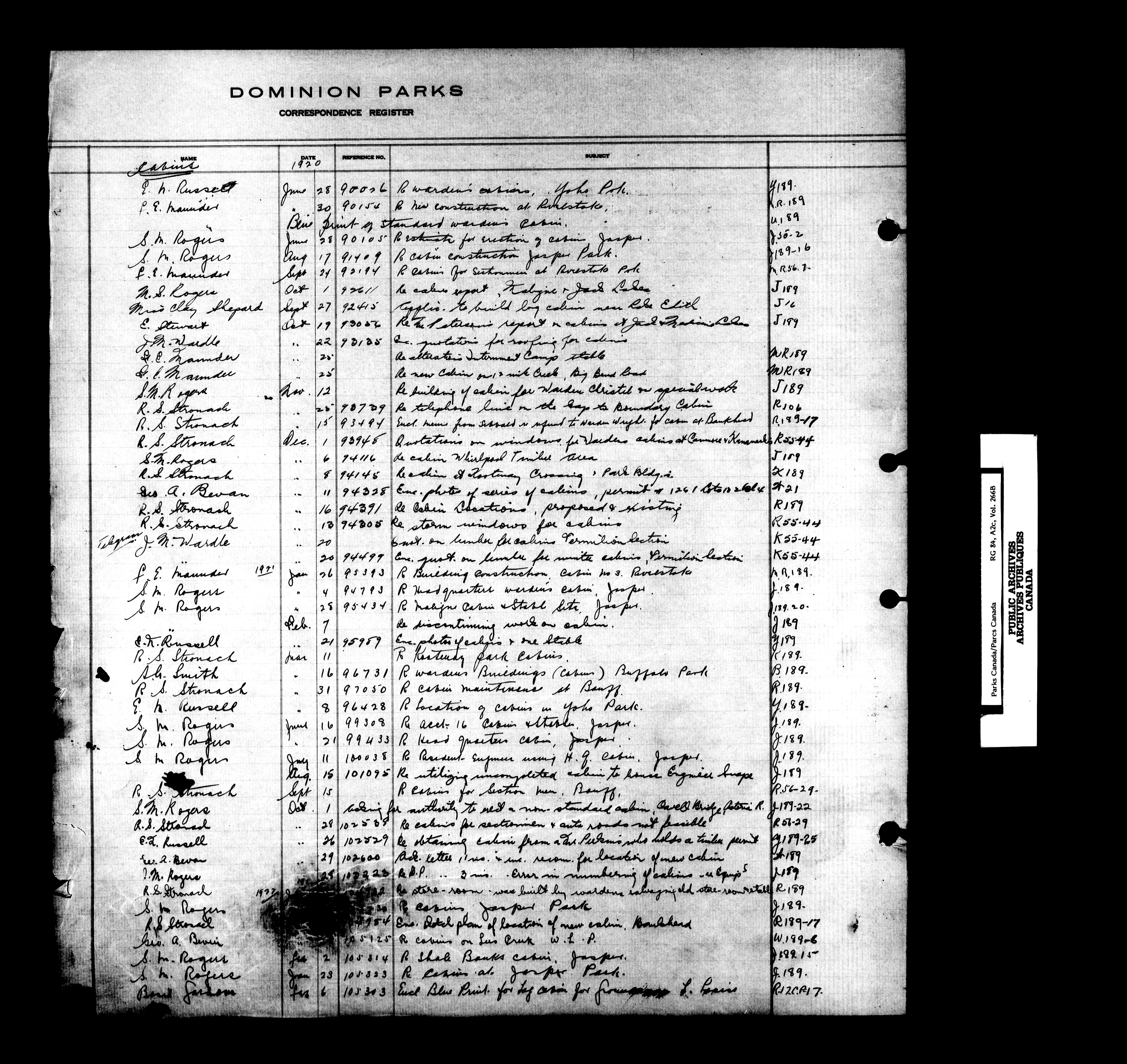 Dominion Parks Branch central registry system : Correspondence registers covering the remaining years of the Dominion Parks Branch in the old Department of the Interior, 1919-1937 - 7328
