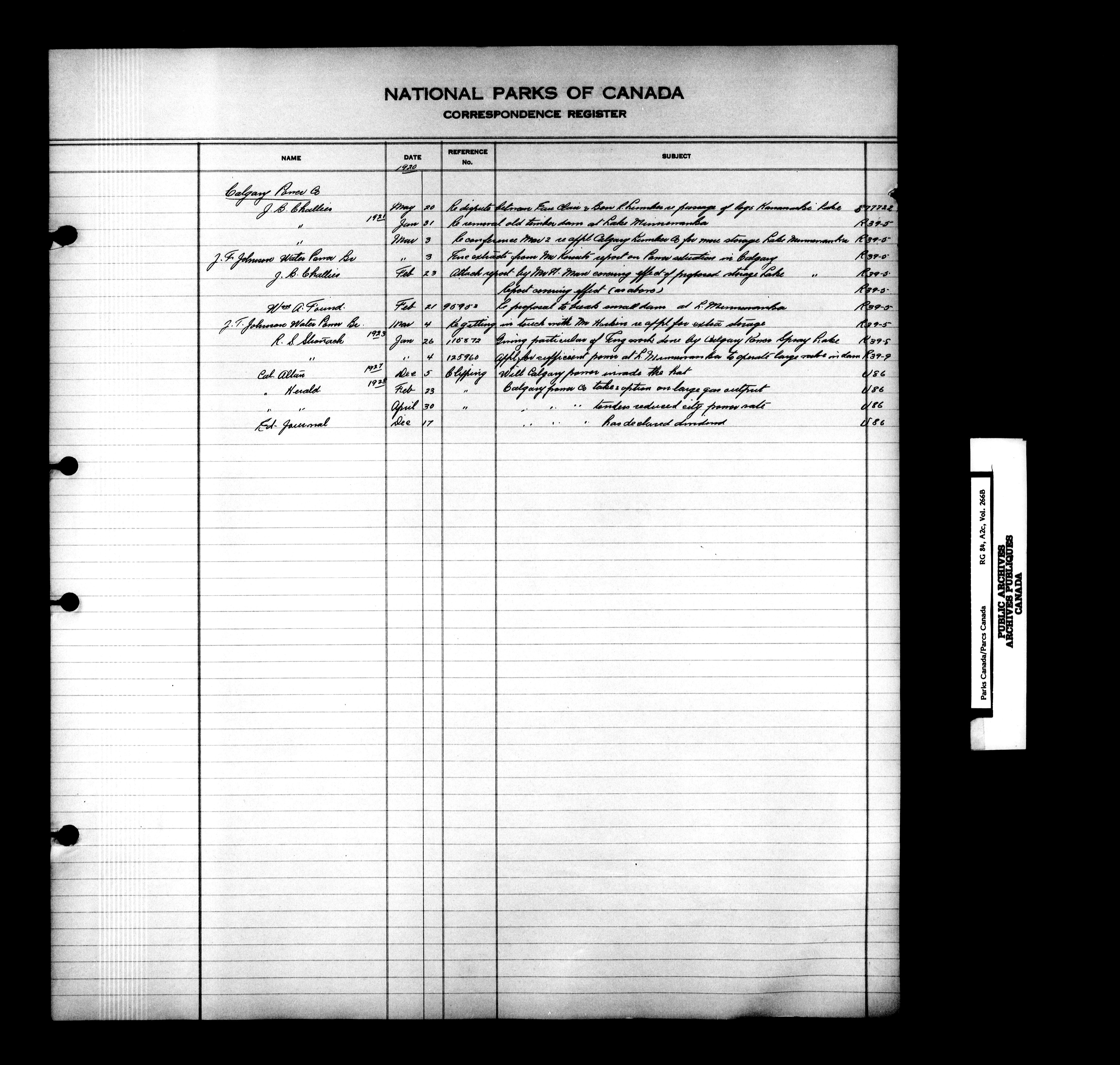 Dominion Parks Branch central registry system : Correspondence registers covering the remaining years of the Dominion Parks Branch in the old Department of the Interior, 1919-1937 - 7328