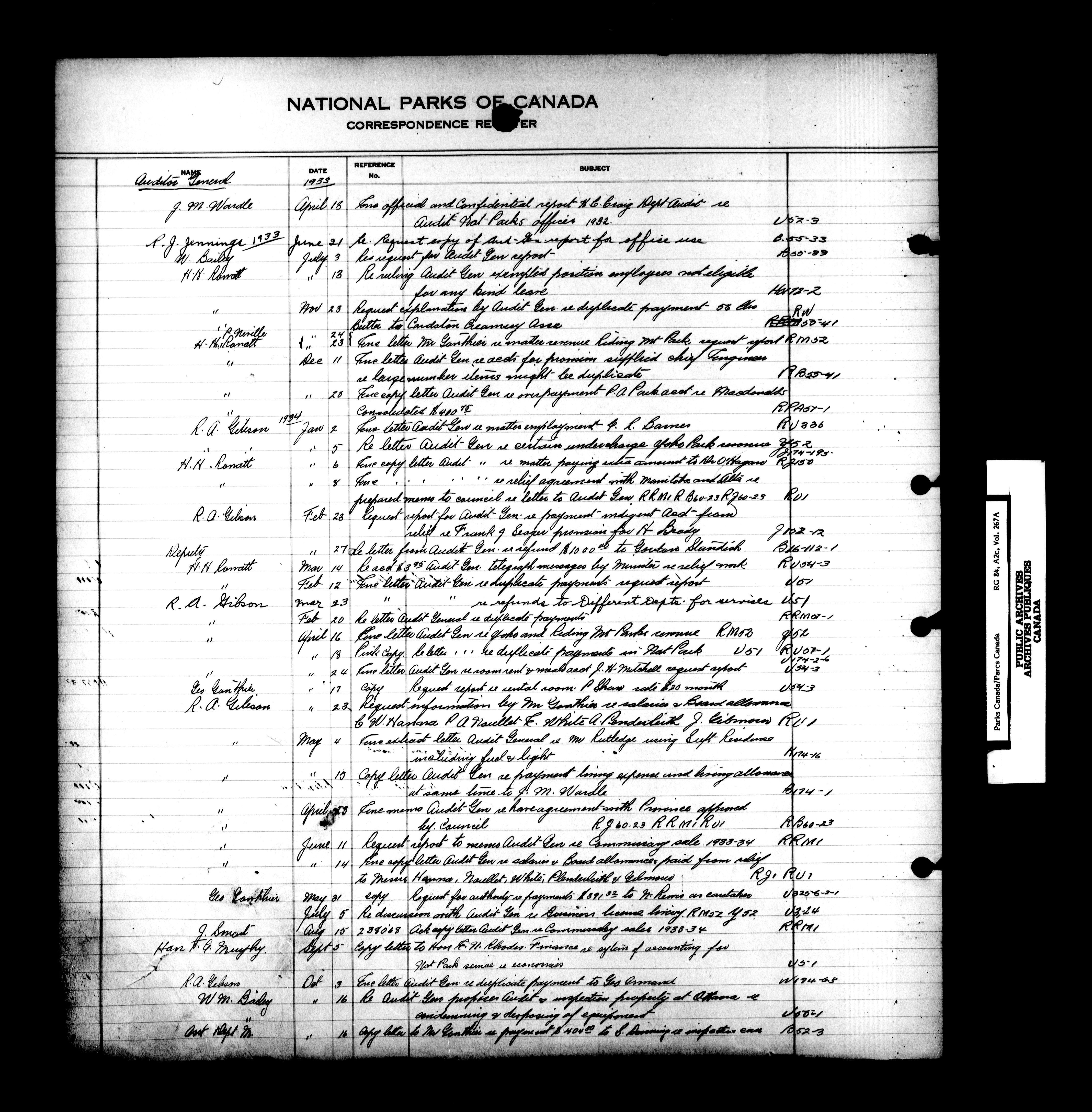 Dominion Parks Branch central registry system : T-7329