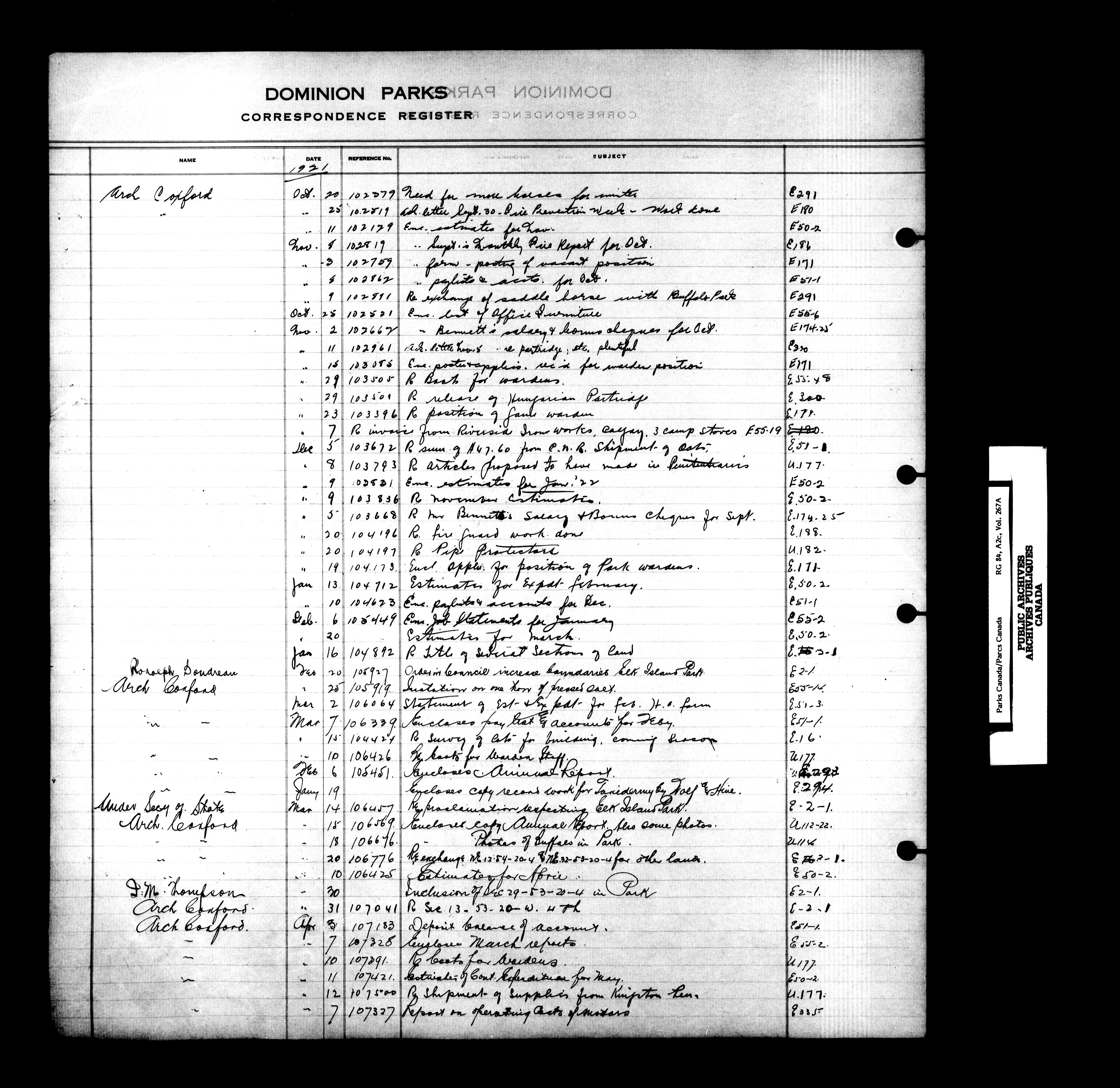 Dominion Parks Branch central registry system : Correspondence registers covering the remaining years of the Dominion Parks Branch in the old Department of the Interior, 1919-1937 - 7330