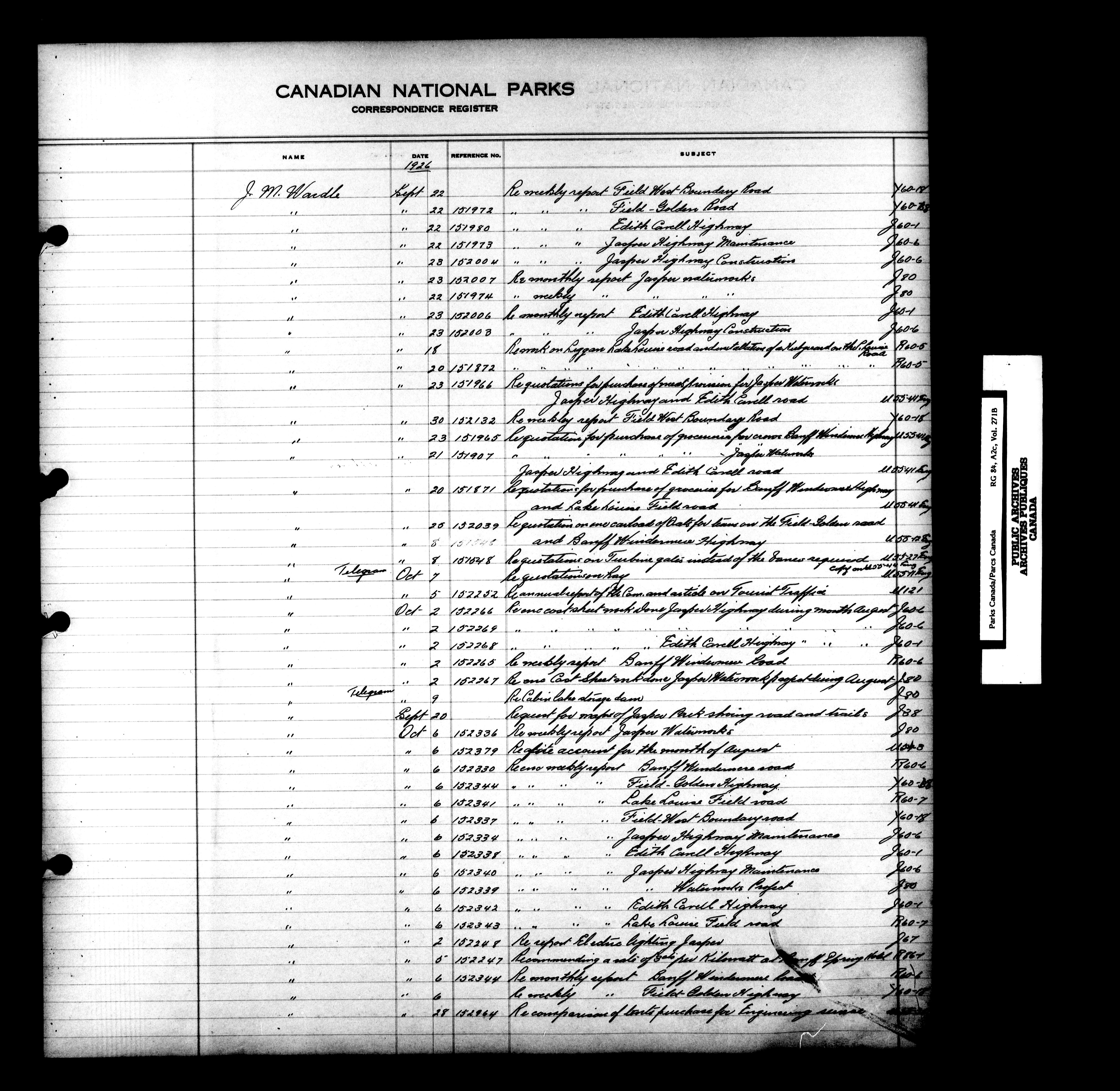 Dominion Parks Branch central registry system : Correspondence registers covering the remaining years of the Dominion Parks Branch in the old Department of the Interior, 1919-1937 - 7335
