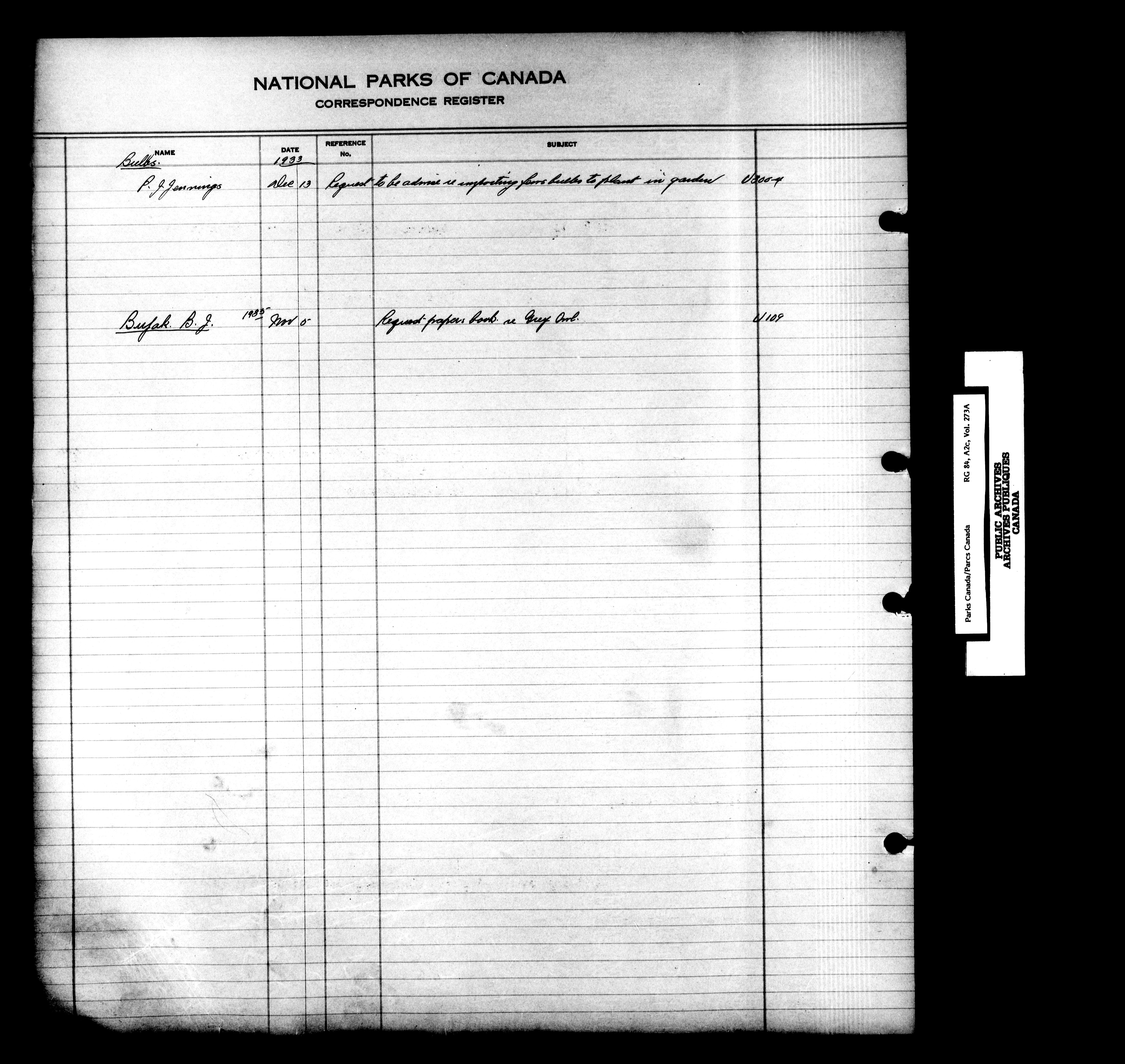 Dominion Parks Branch central registry system : Correspondence registers covering the remaining years of the Dominion Parks Branch in the old Department of the Interior, 1919-1937 - 7338