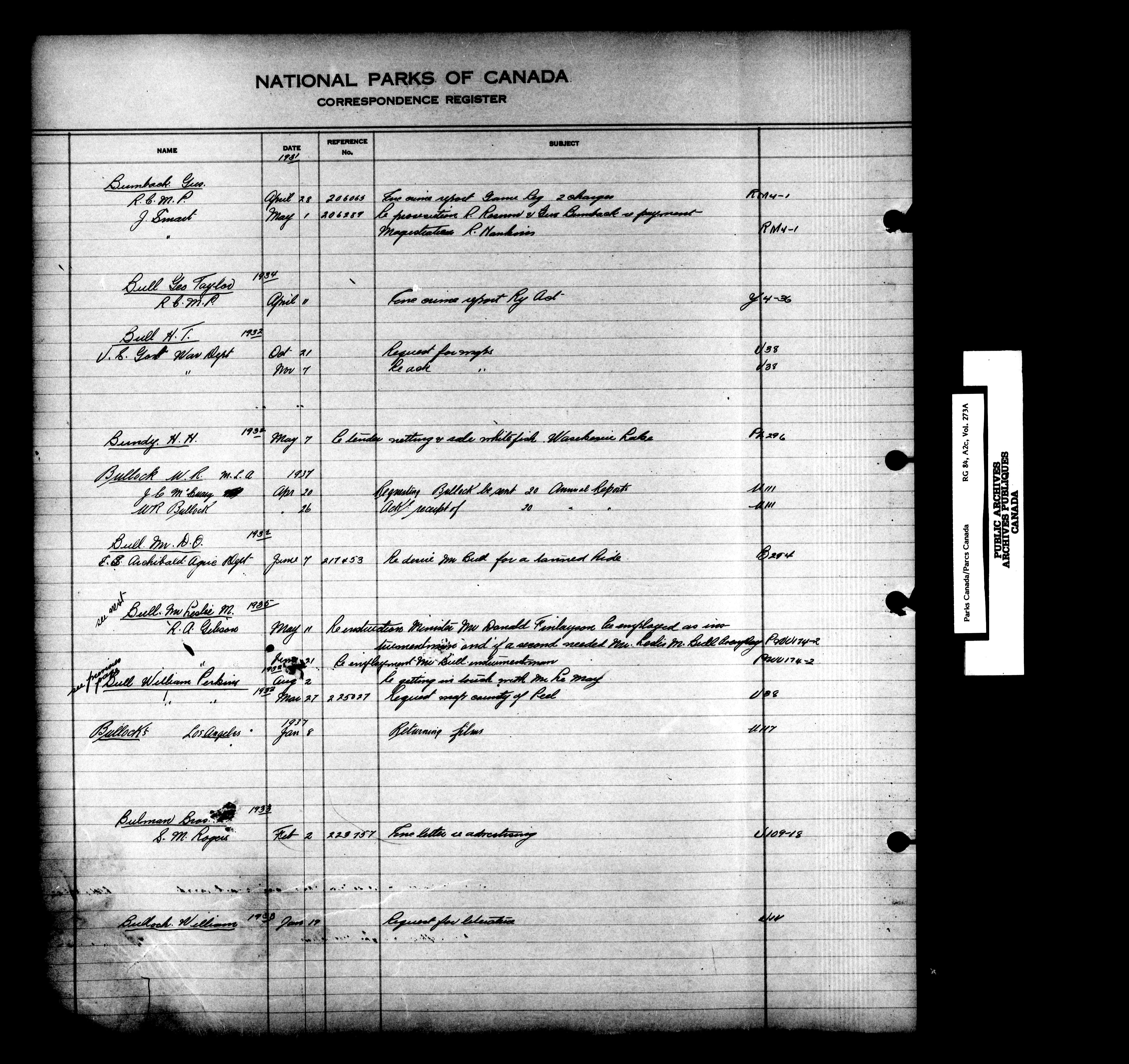 Dominion Parks Branch central registry system : Correspondence registers covering the remaining years of the Dominion Parks Branch in the old Department of the Interior, 1919-1937 - 7338