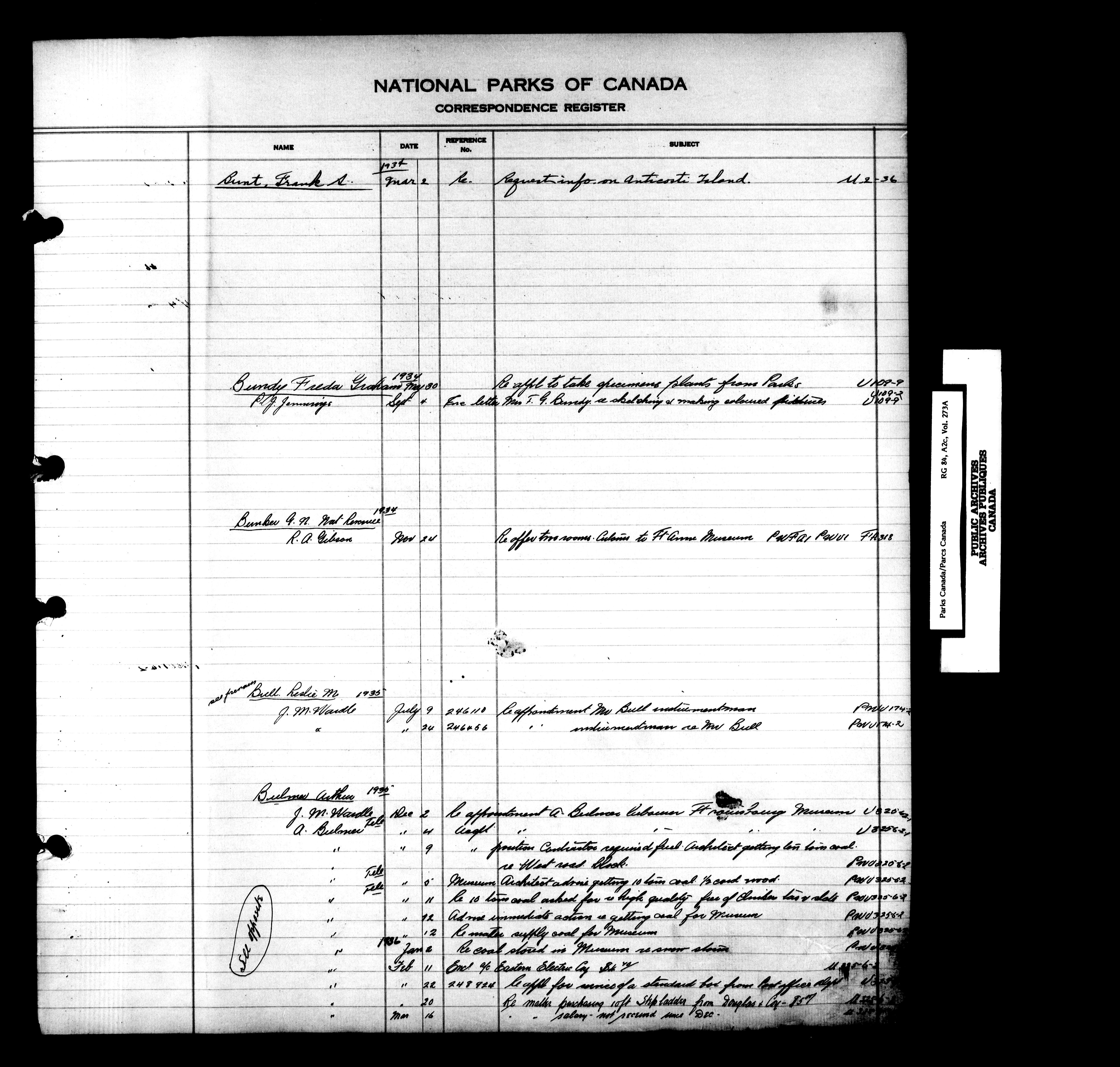 Dominion Parks Branch central registry system : Correspondence registers covering the remaining years of the Dominion Parks Branch in the old Department of the Interior, 1919-1937 - 7338