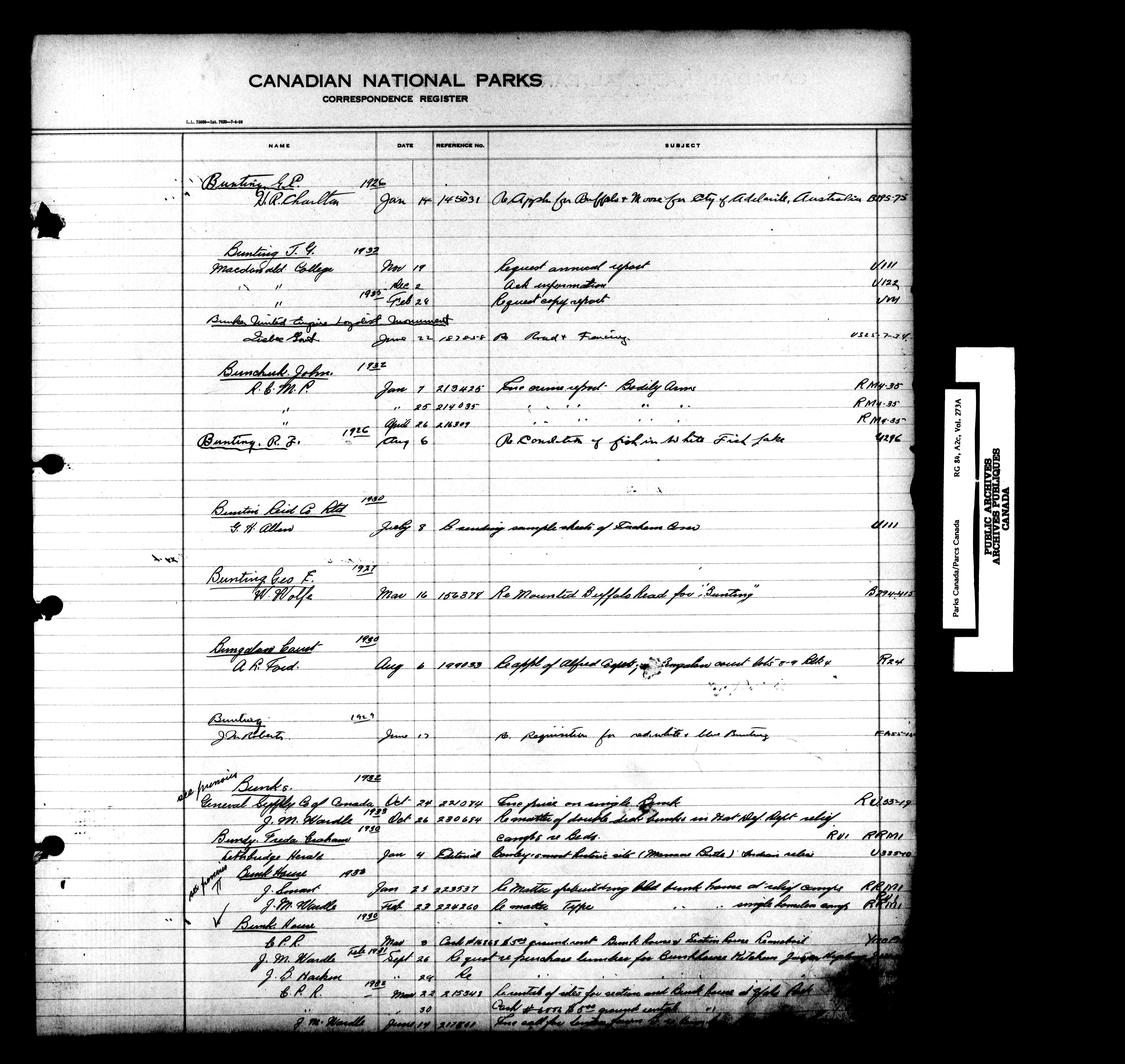 Dominion Parks Branch central registry system : Correspondence registers covering the remaining years of the Dominion Parks Branch in the old Department of the Interior, 1919-1937 - 7338