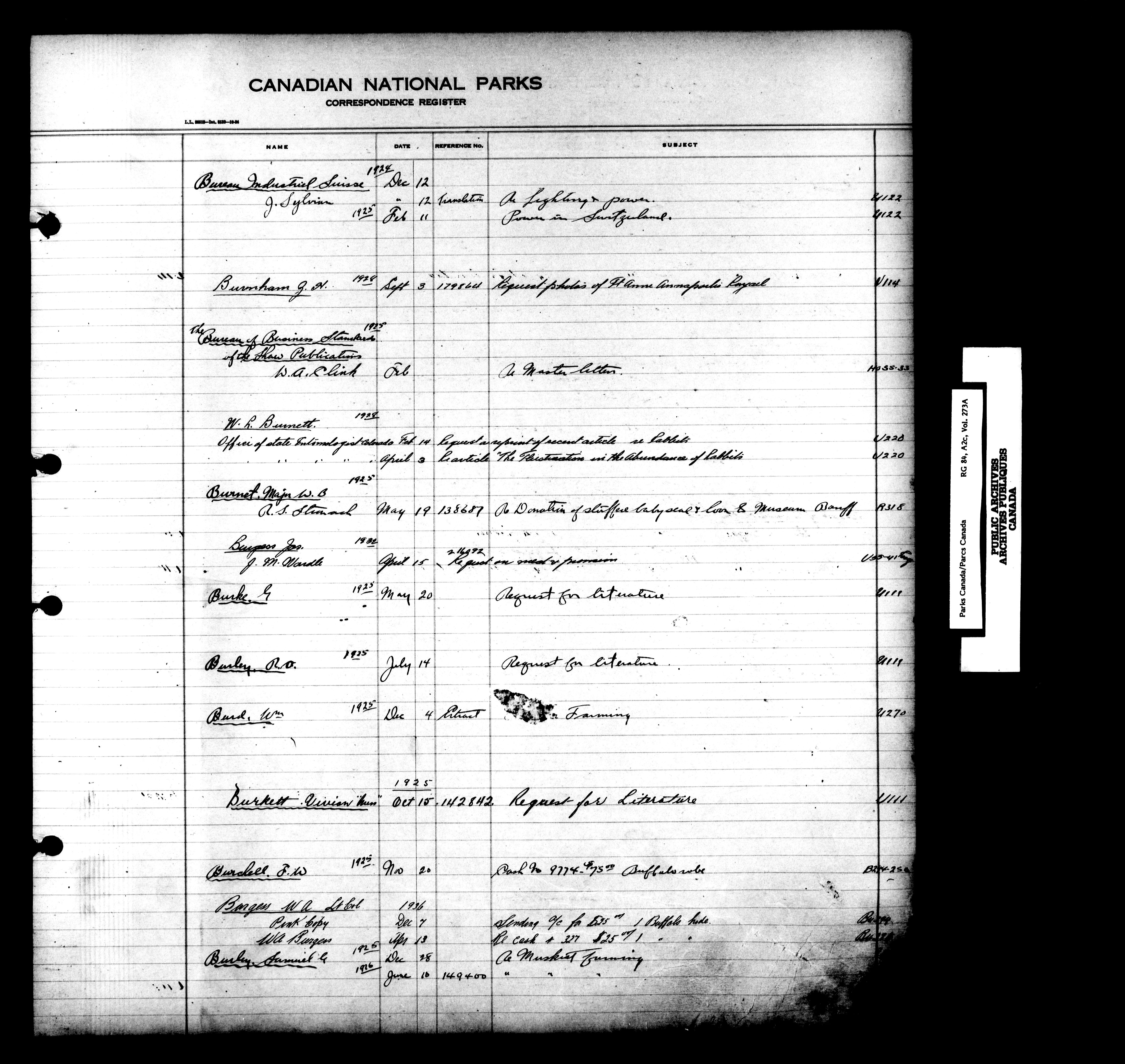Dominion Parks Branch central registry system : Correspondence registers covering the remaining years of the Dominion Parks Branch in the old Department of the Interior, 1919-1937 - 7338
