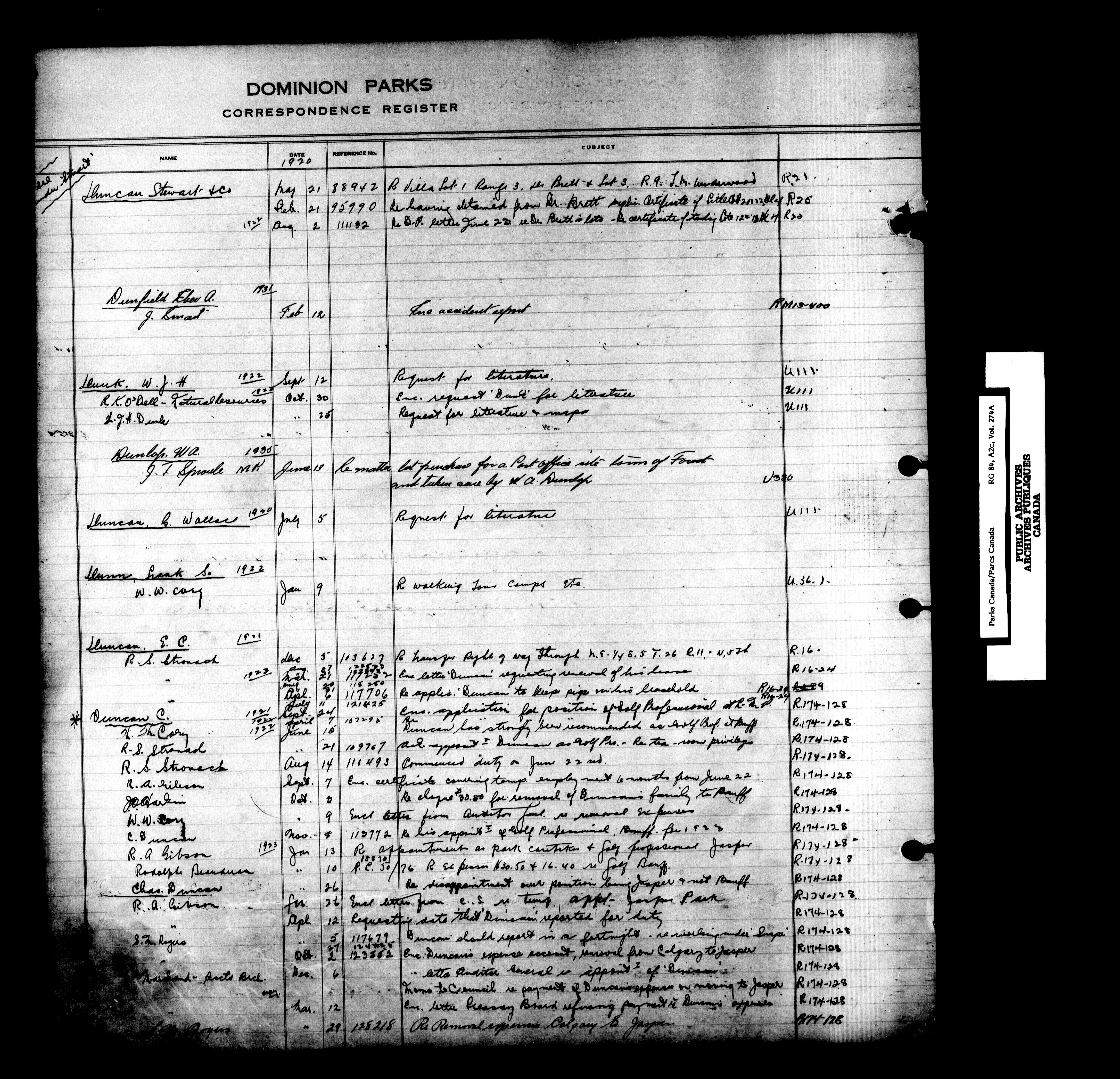 Dominion Parks Branch central registry system : Correspondence registers covering the remaining years of the Dominion Parks Branch in the old Department of the Interior, 1919-1937 - 7340