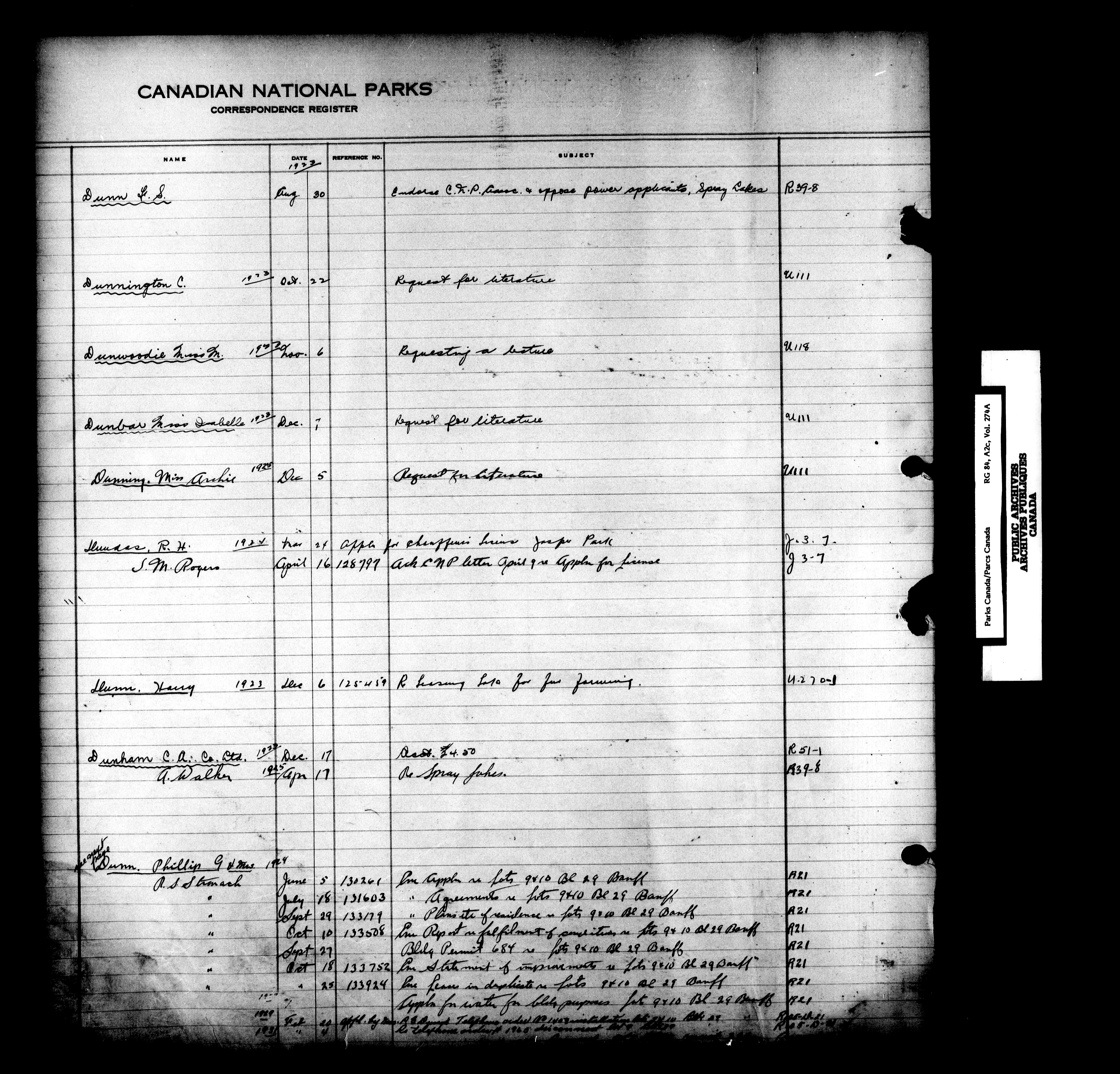 Dominion Parks Branch central registry system : Correspondence registers covering the remaining years of the Dominion Parks Branch in the old Department of the Interior, 1919-1937 - 7340
