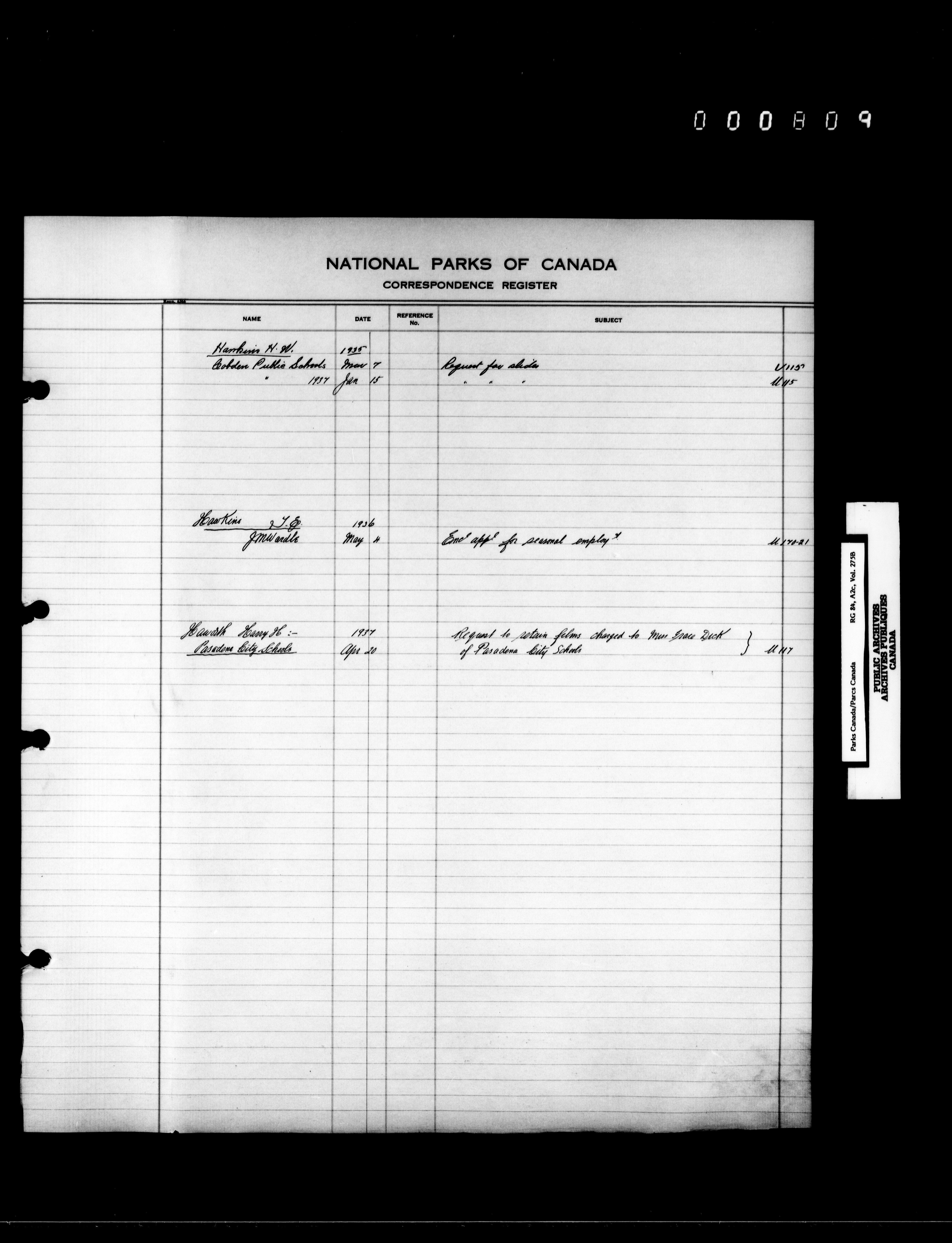 Dominion Parks Branch central registry system : Correspondence registers covering the remaining years of the Dominion Parks Branch in the old Department of the Interior, 1919-1937 - 7341