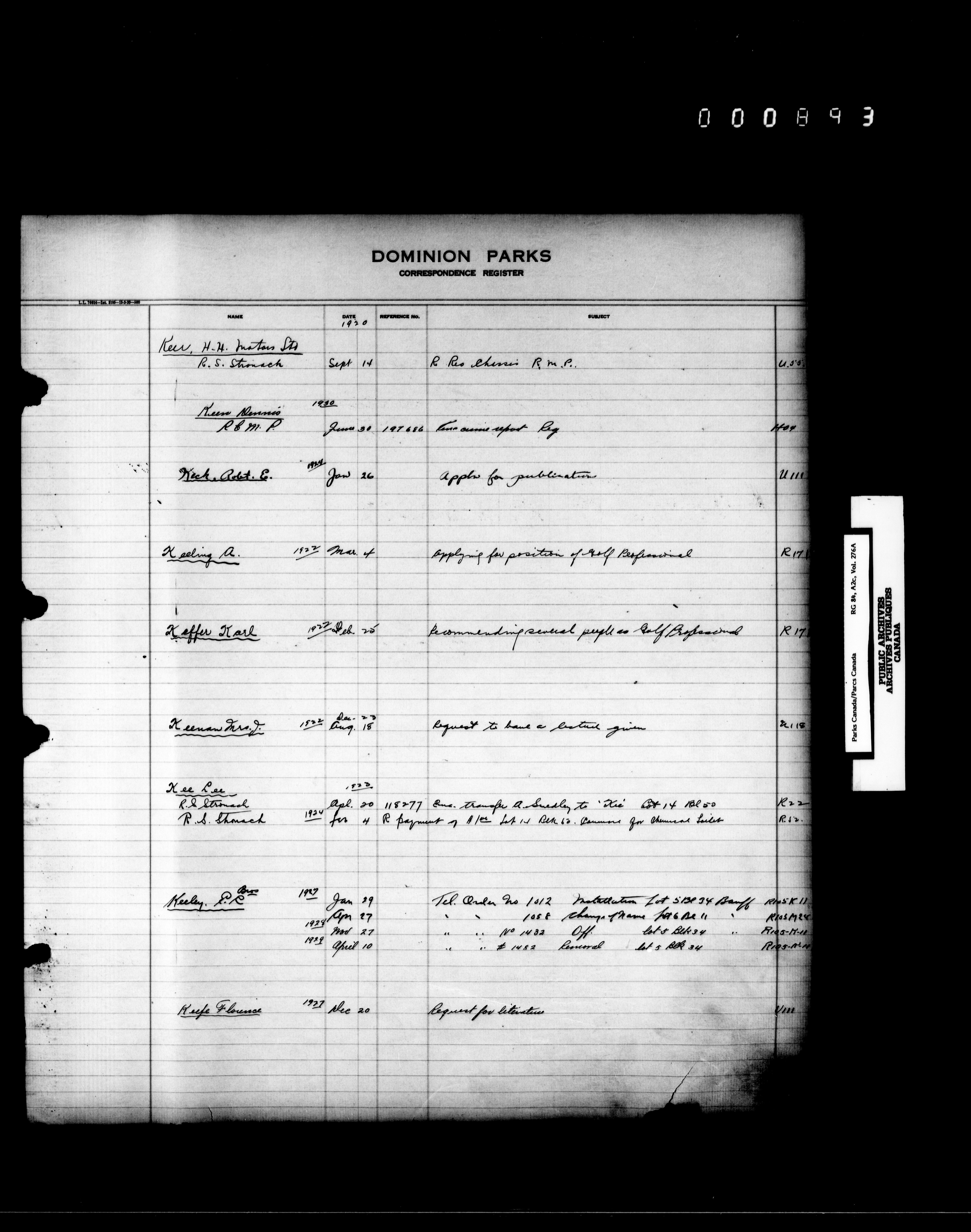 Dominion Parks Branch central registry system : Correspondence registers covering the remaining years of the Dominion Parks Branch in the old Department of the Interior, 1919-1937 - 7342