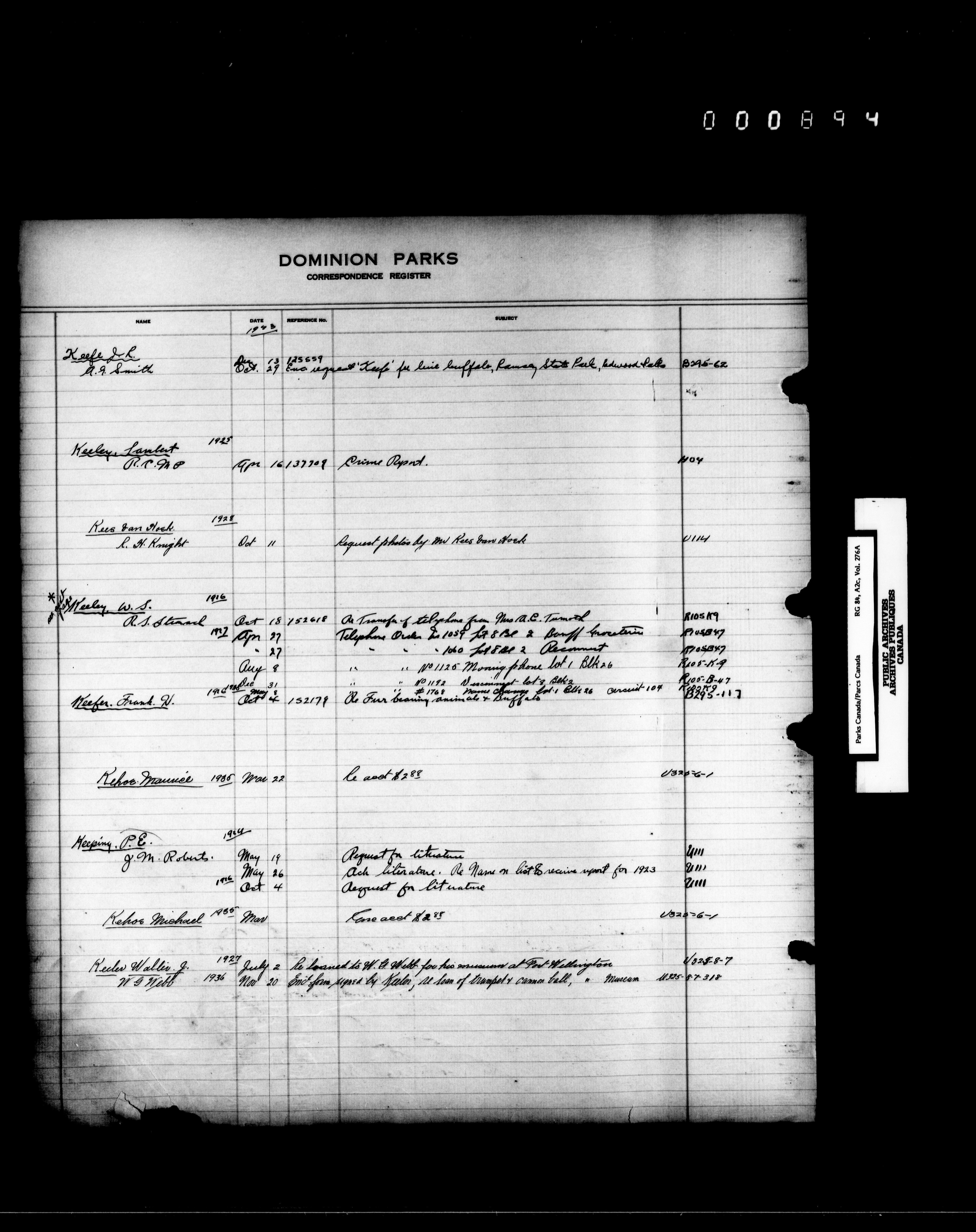 Dominion Parks Branch central registry system : Correspondence registers covering the remaining years of the Dominion Parks Branch in the old Department of the Interior, 1919-1937 - 7342