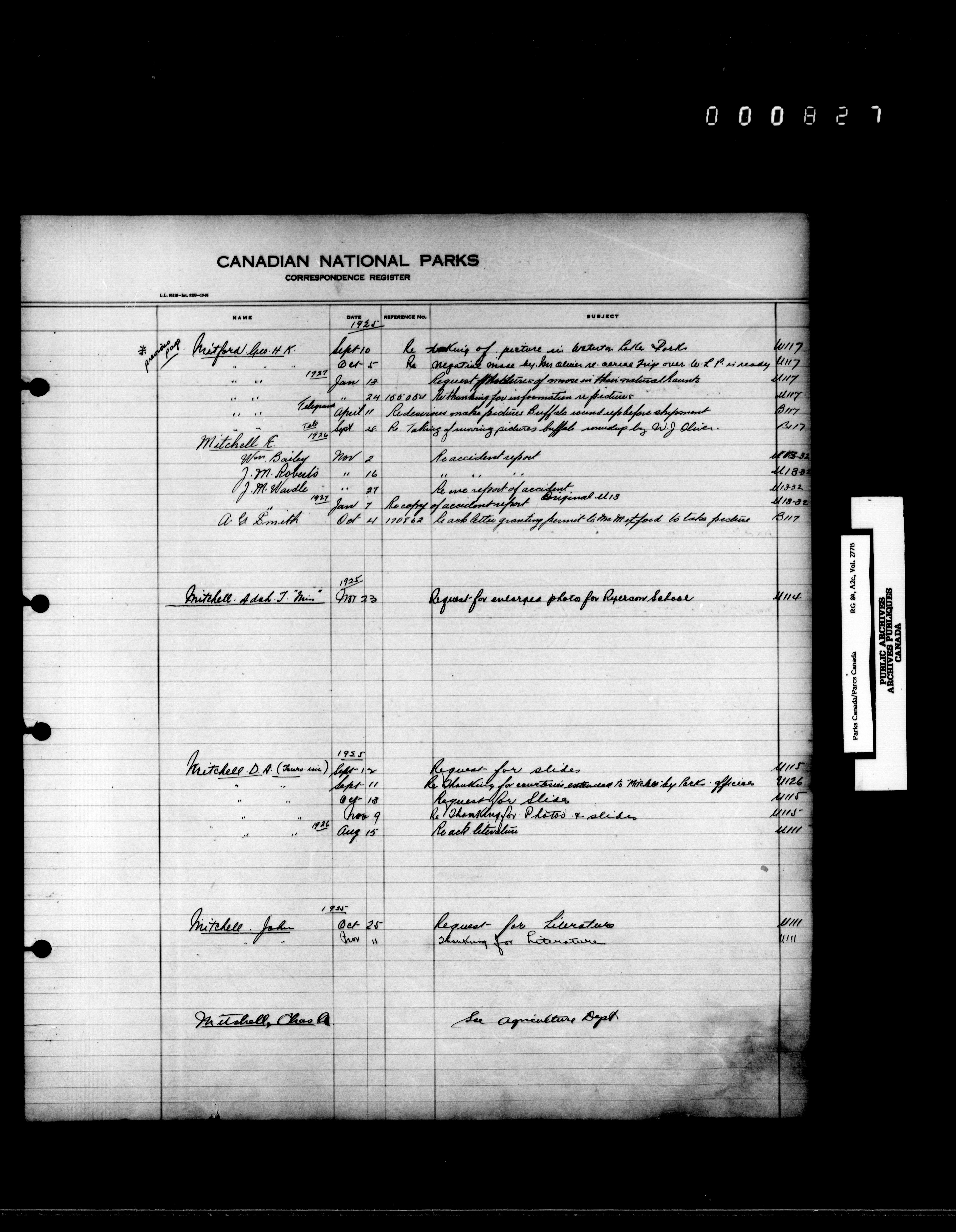 Dominion Parks Branch central registry system : Correspondence registers covering the remaining years of the Dominion Parks Branch in the old Department of the Interior, 1919-1937 - 7344