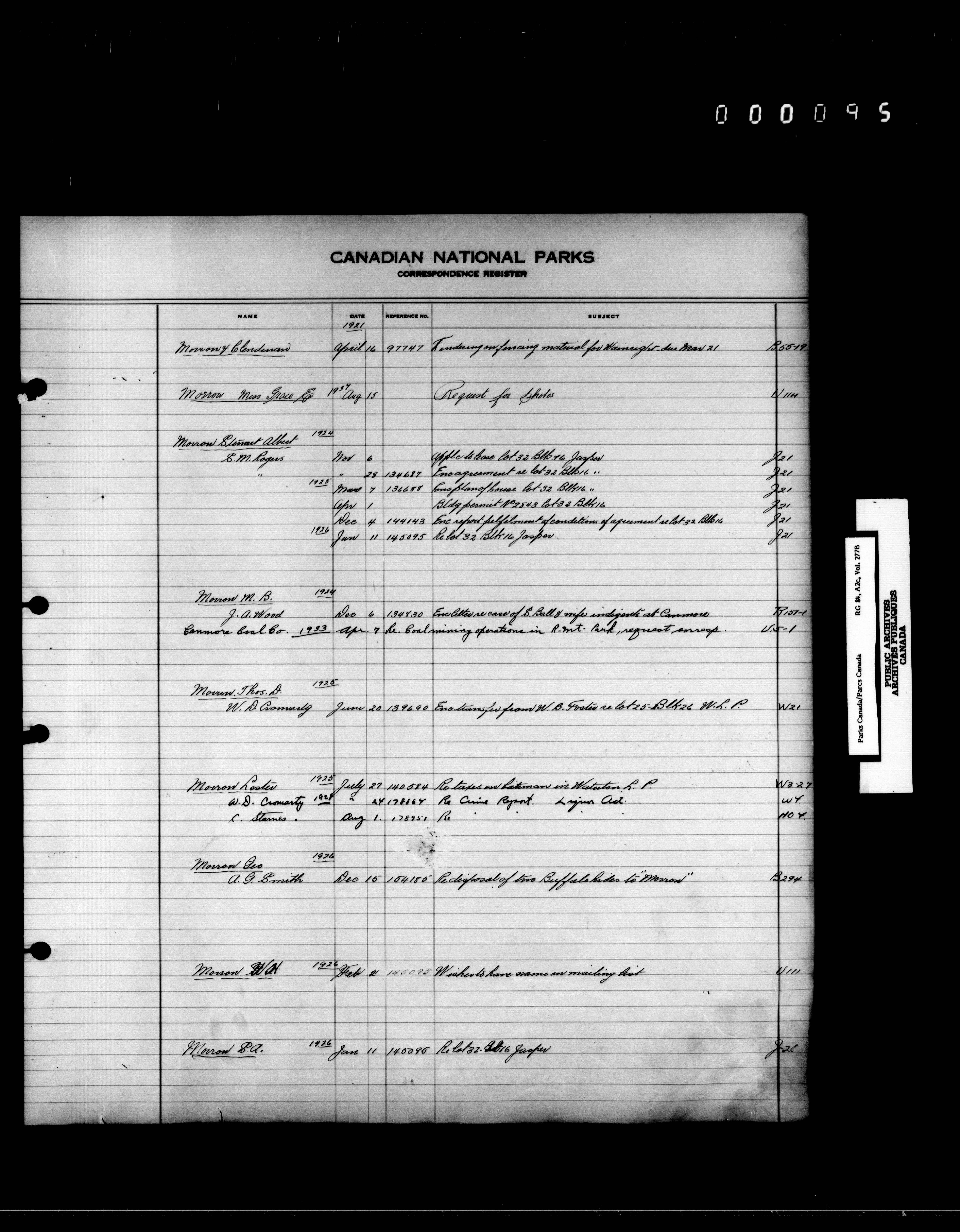 Dominion Parks Branch central registry system : Correspondence registers covering the remaining years of the Dominion Parks Branch in the old Department of the Interior, 1919-1937 - 7345