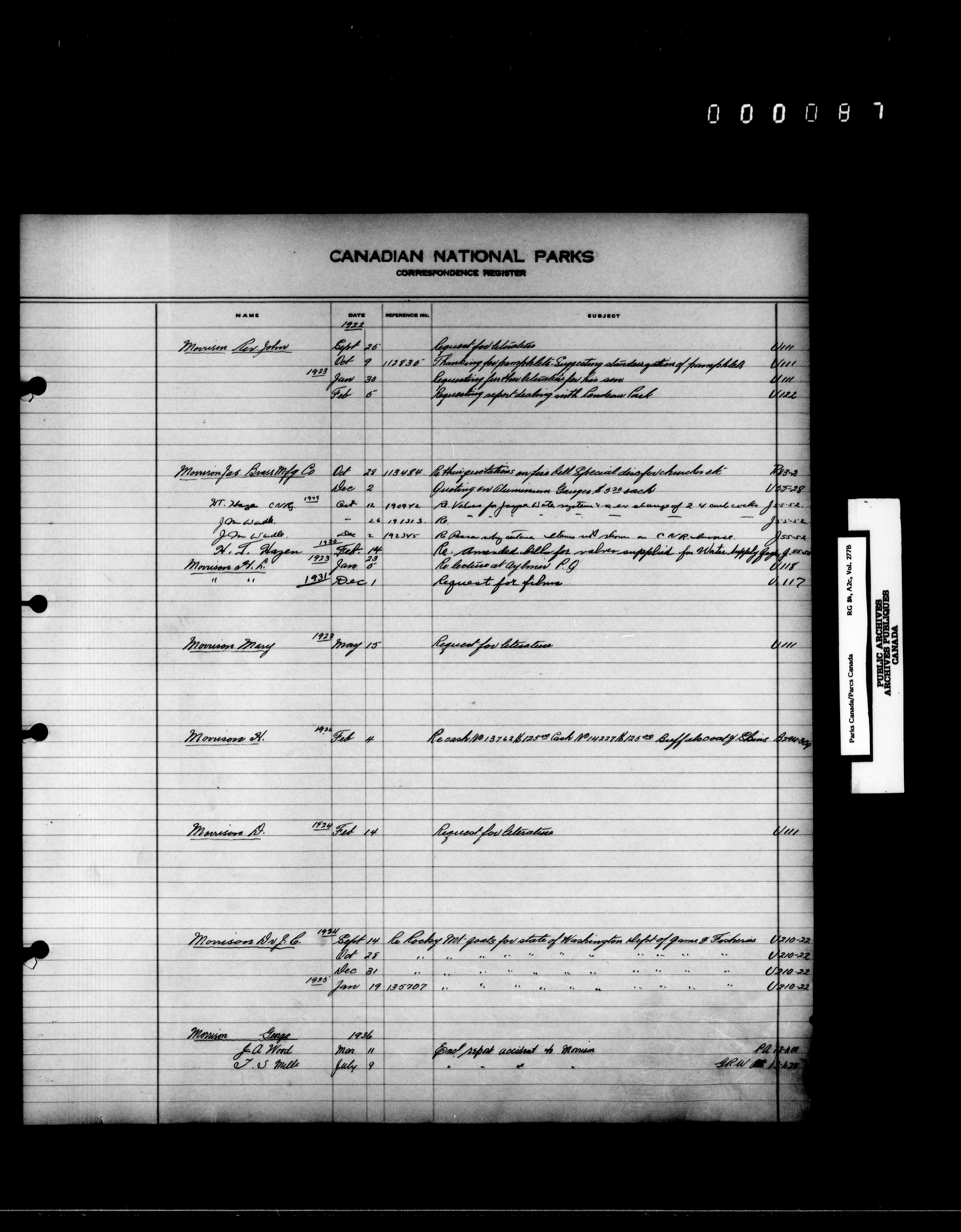 Dominion Parks Branch central registry system : Correspondence registers covering the remaining years of the Dominion Parks Branch in the old Department of the Interior, 1919-1937 - 7345