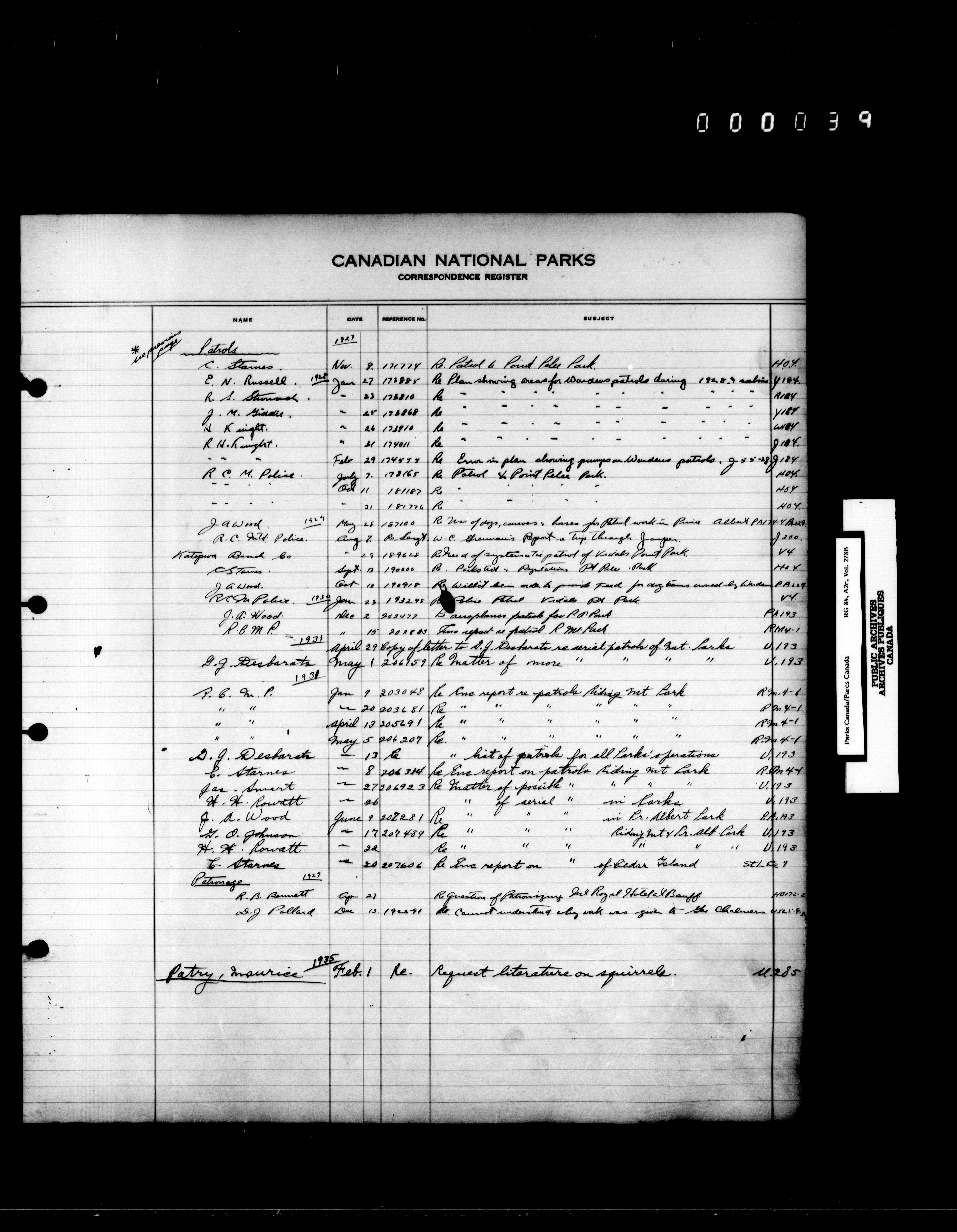 Dominion Parks Branch central registry system : Correspondence registers covering the remaining years of the Dominion Parks Branch in the old Department of the Interior, 1919-1937 - 7346