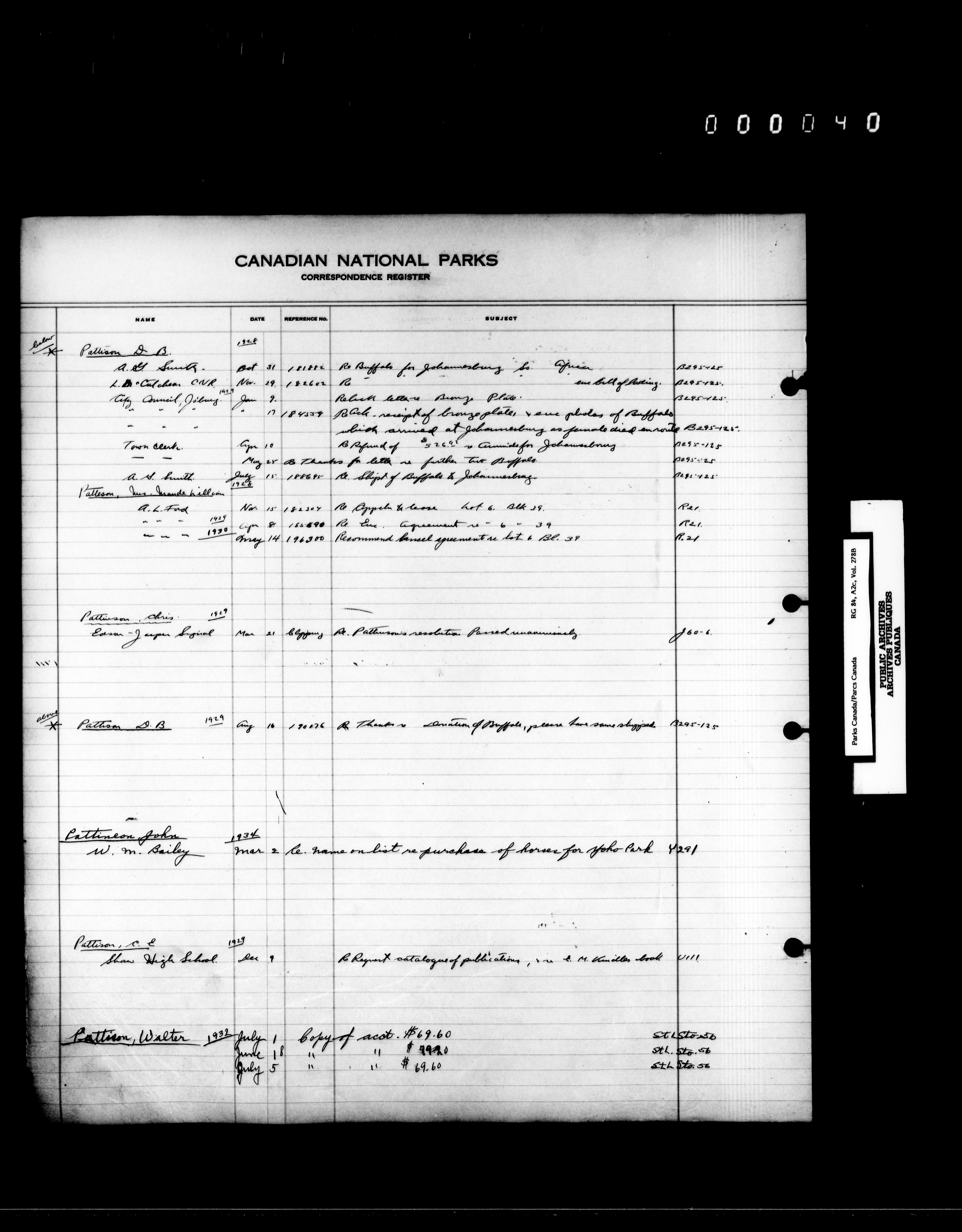 Dominion Parks Branch central registry system : Correspondence registers covering the remaining years of the Dominion Parks Branch in the old Department of the Interior, 1919-1937 - 7346
