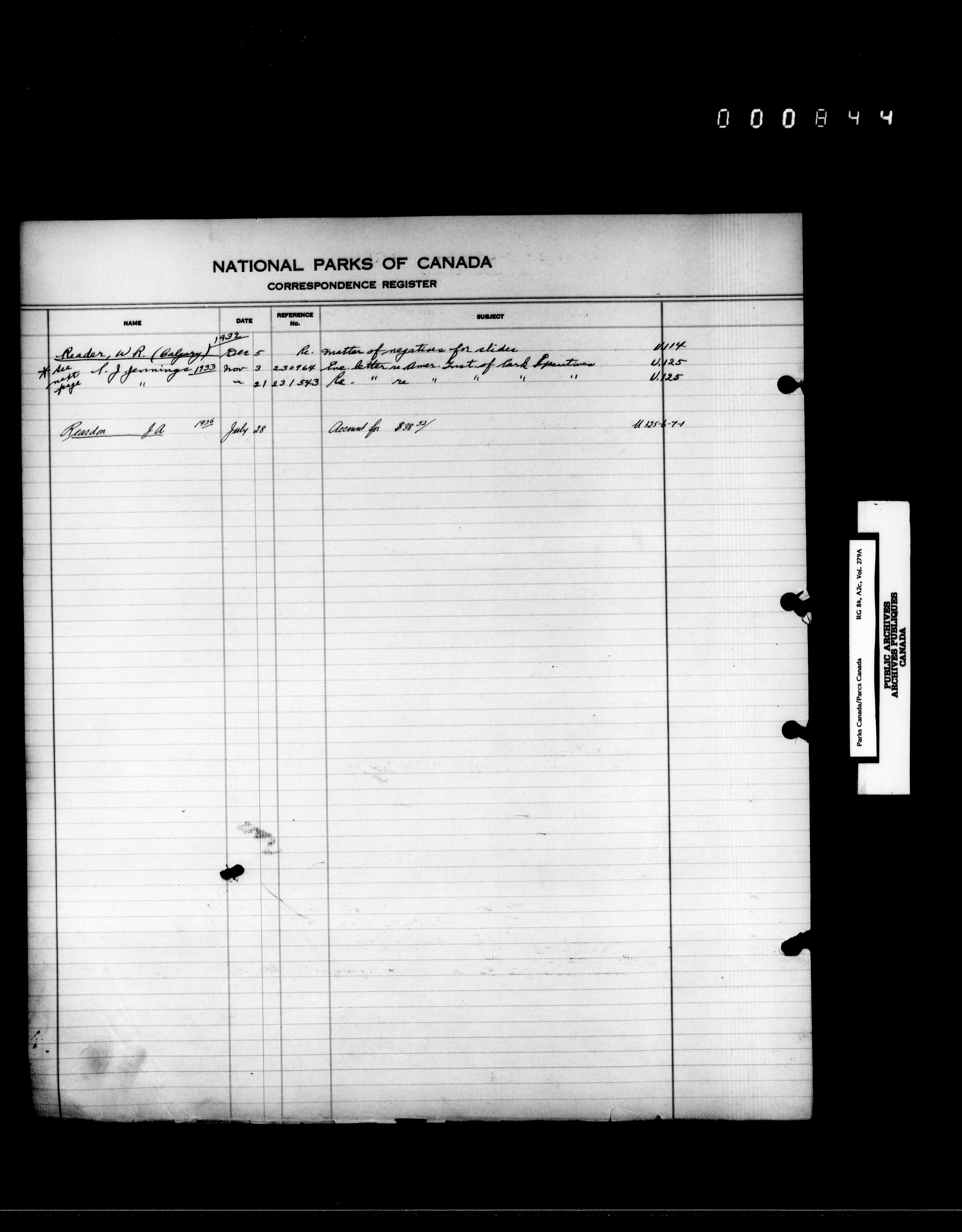 Dominion Parks Branch central registry system : Correspondence registers covering the remaining years of the Dominion Parks Branch in the old Department of the Interior, 1919-1937 - 7346