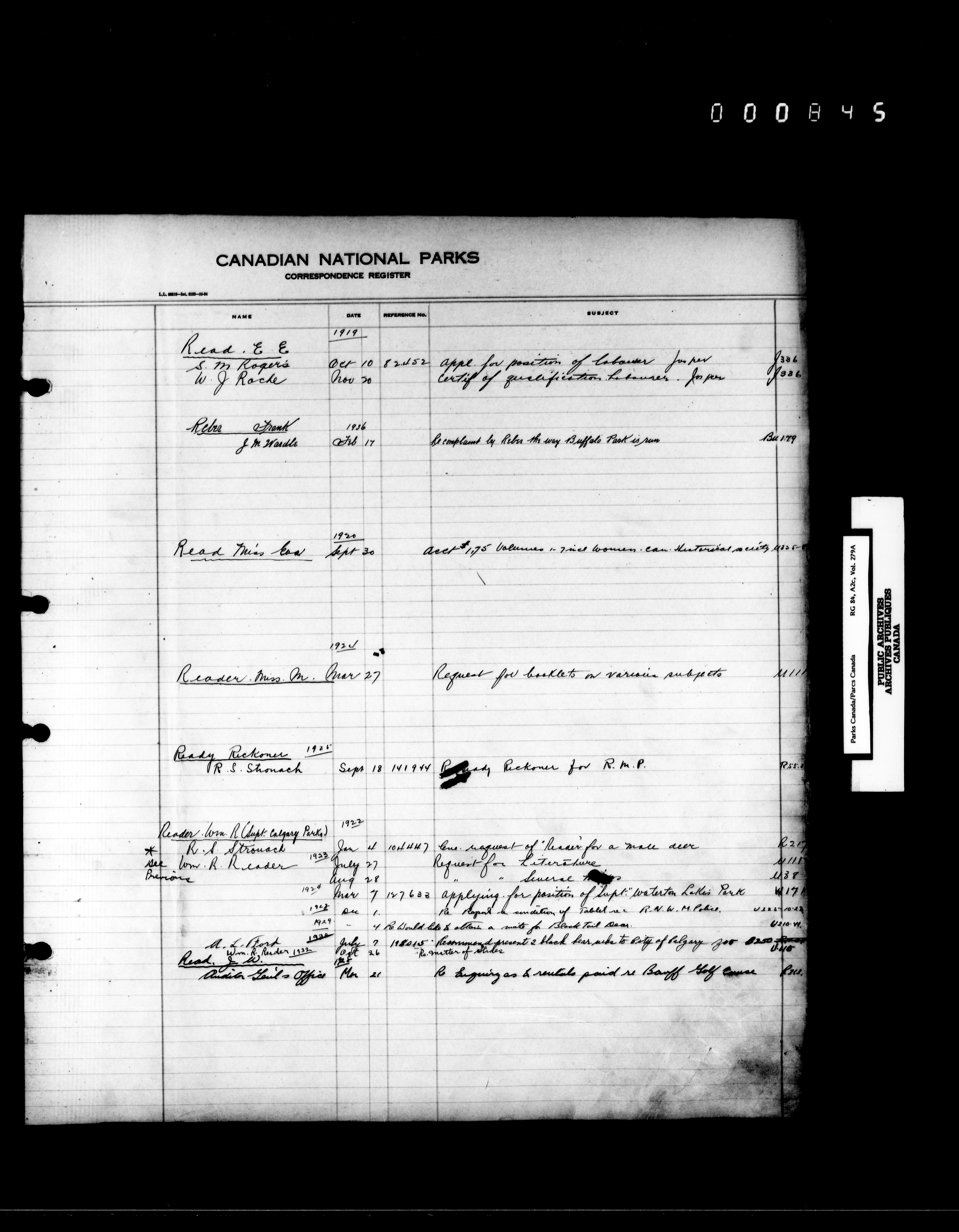 Dominion Parks Branch central registry system : Correspondence registers covering the remaining years of the Dominion Parks Branch in the old Department of the Interior, 1919-1937 - 7346