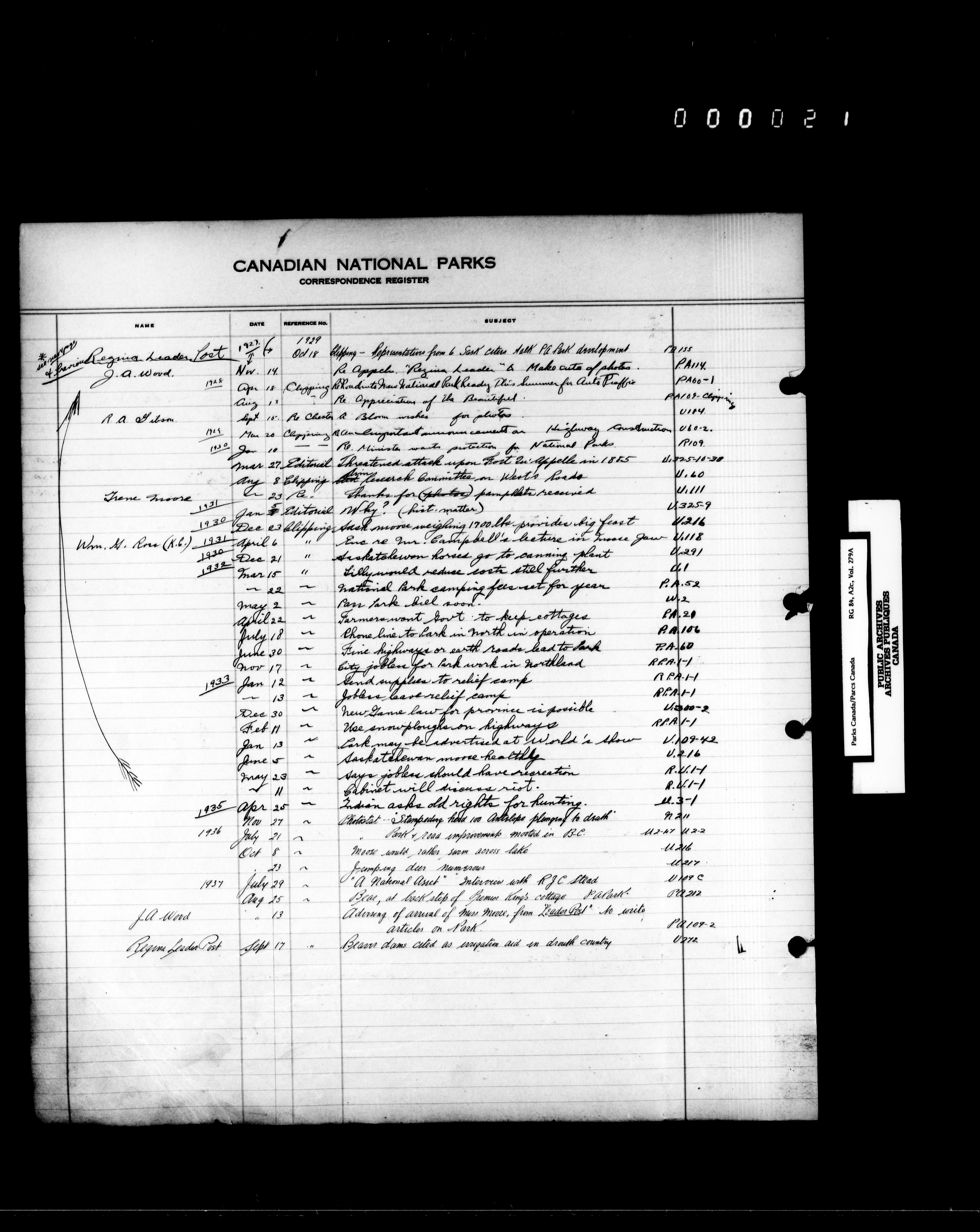 Dominion Parks Branch central registry system : Correspondence registers covering the remaining years of the Dominion Parks Branch in the old Department of the Interior, 1919-1937 - 7347