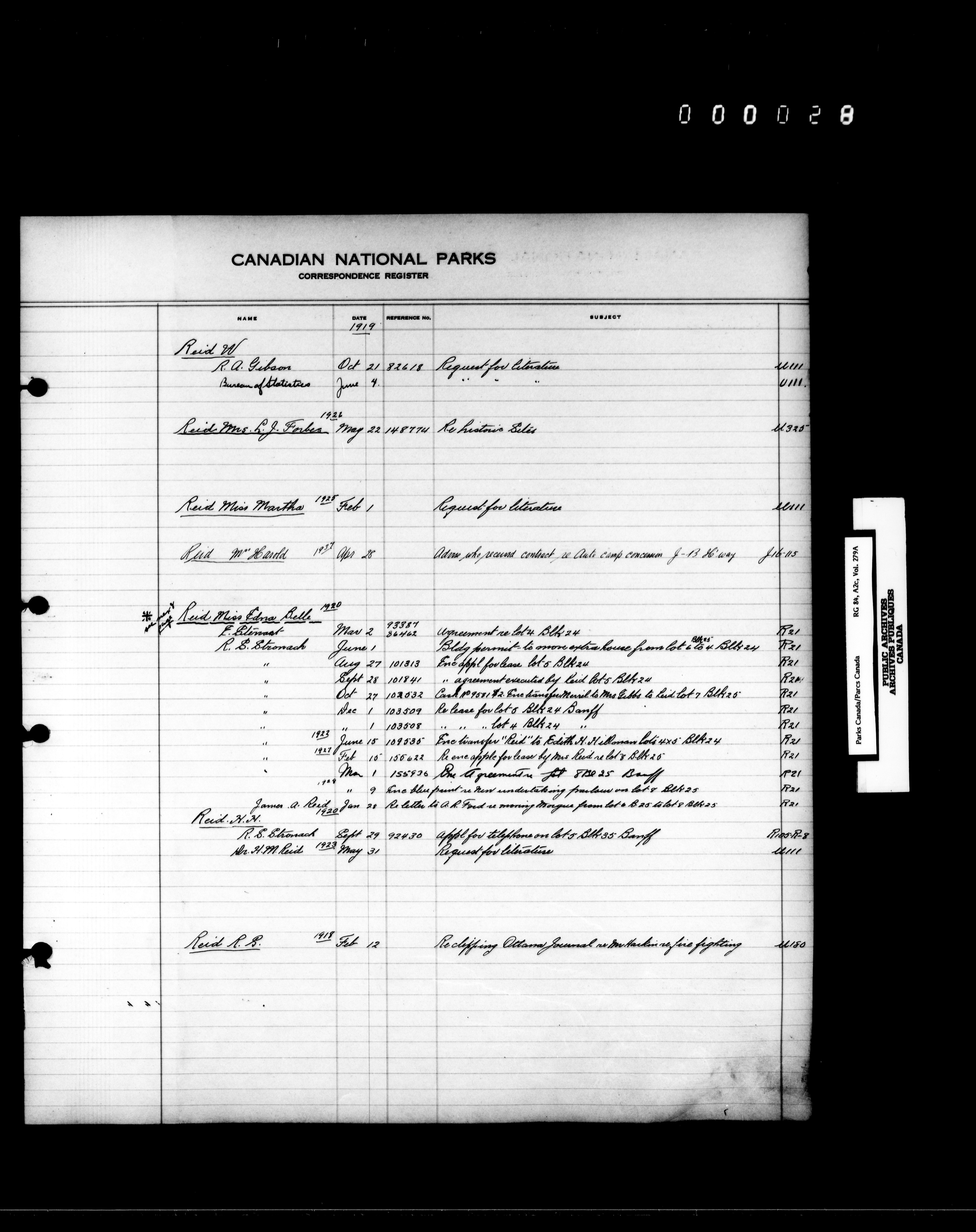 Dominion Parks Branch central registry system : Correspondence registers covering the remaining years of the Dominion Parks Branch in the old Department of the Interior, 1919-1937 - 7347