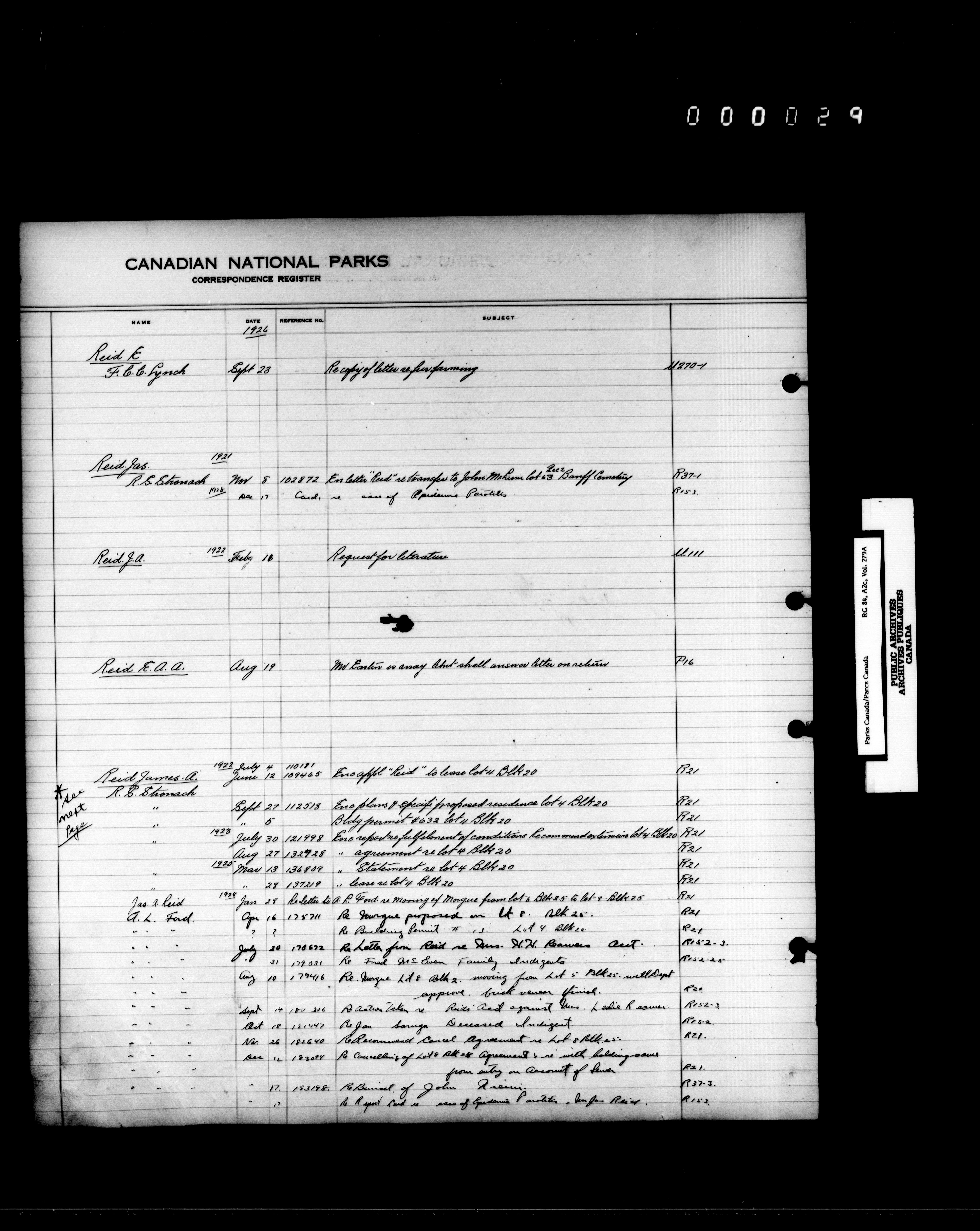 Dominion Parks Branch central registry system : Correspondence registers covering the remaining years of the Dominion Parks Branch in the old Department of the Interior, 1919-1937 - 7347