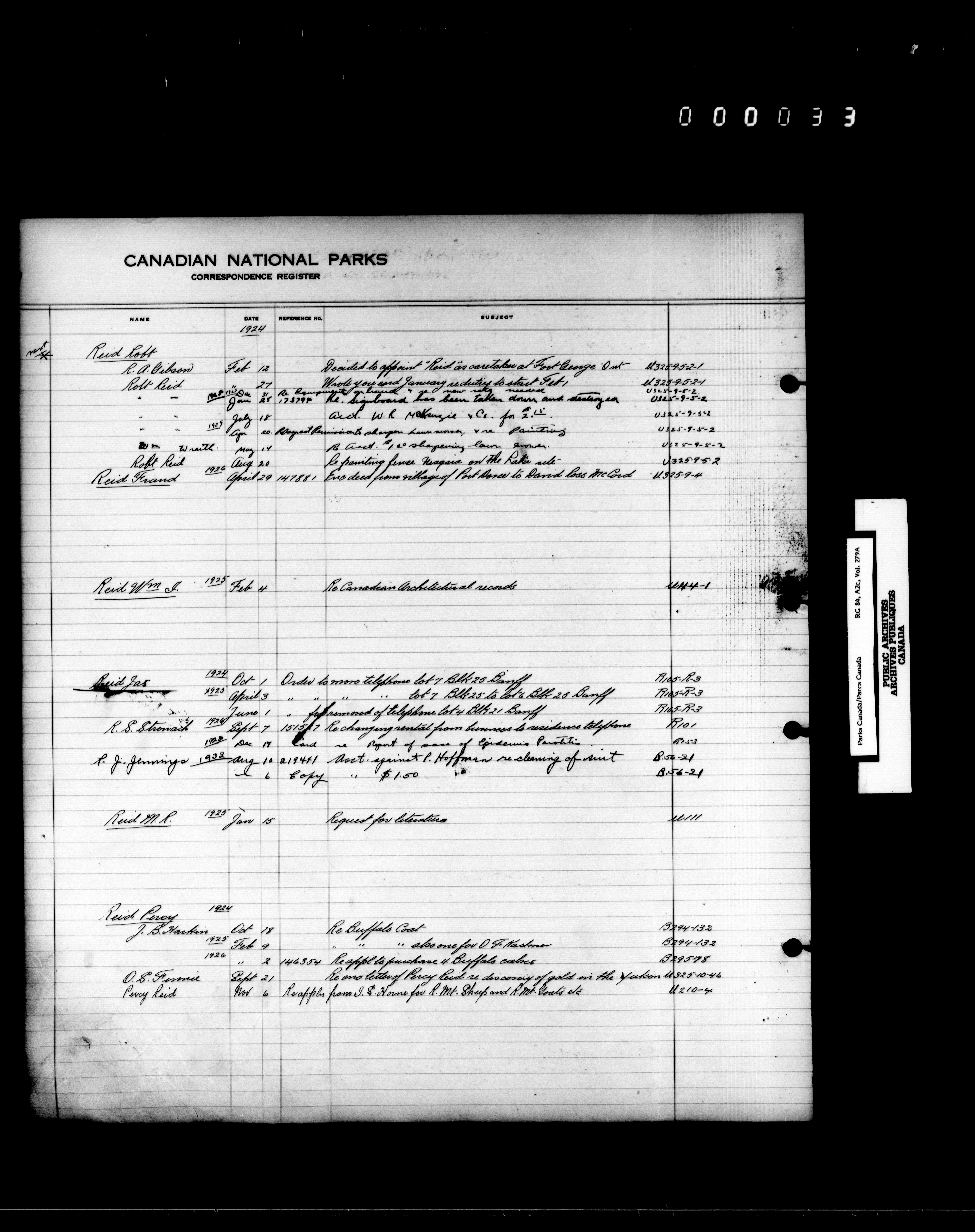 Dominion Parks Branch central registry system : Correspondence registers covering the remaining years of the Dominion Parks Branch in the old Department of the Interior, 1919-1937 - 7347
