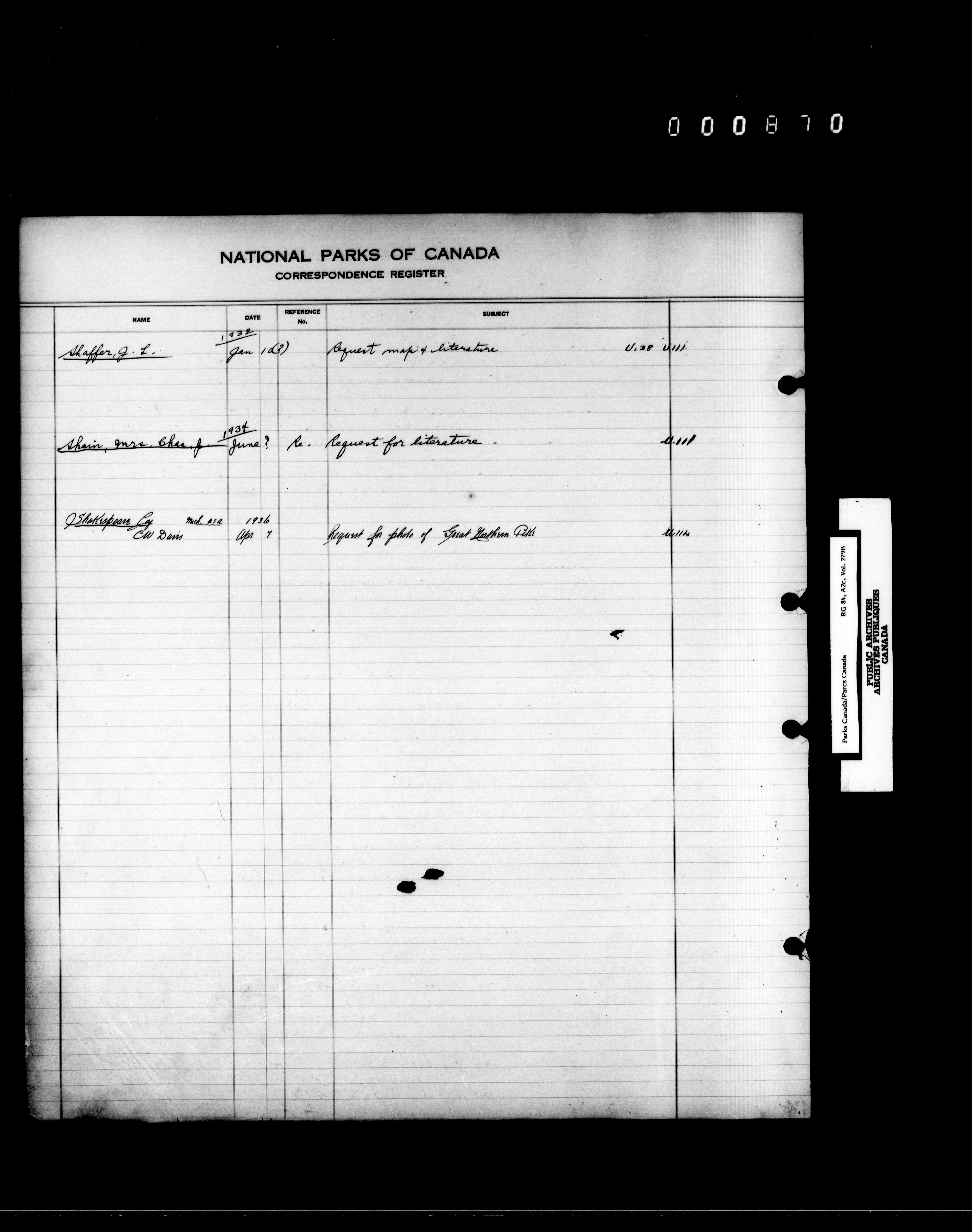 Dominion Parks Branch central registry system : Correspondence registers covering the remaining years of the Dominion Parks Branch in the old Department of the Interior, 1919-1937 - 7347
