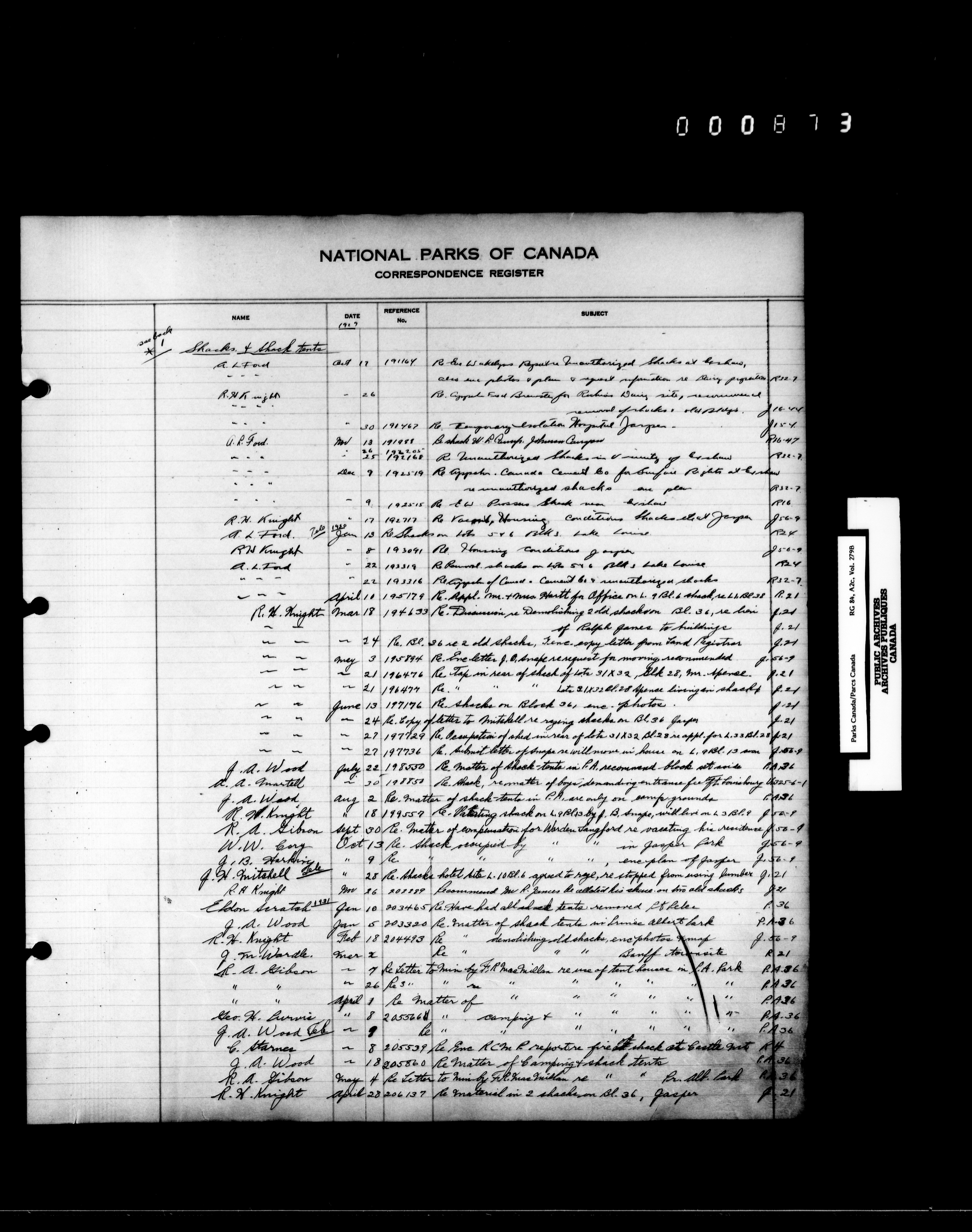 Dominion Parks Branch central registry system : Correspondence registers covering the remaining years of the Dominion Parks Branch in the old Department of the Interior, 1919-1937 - 7347