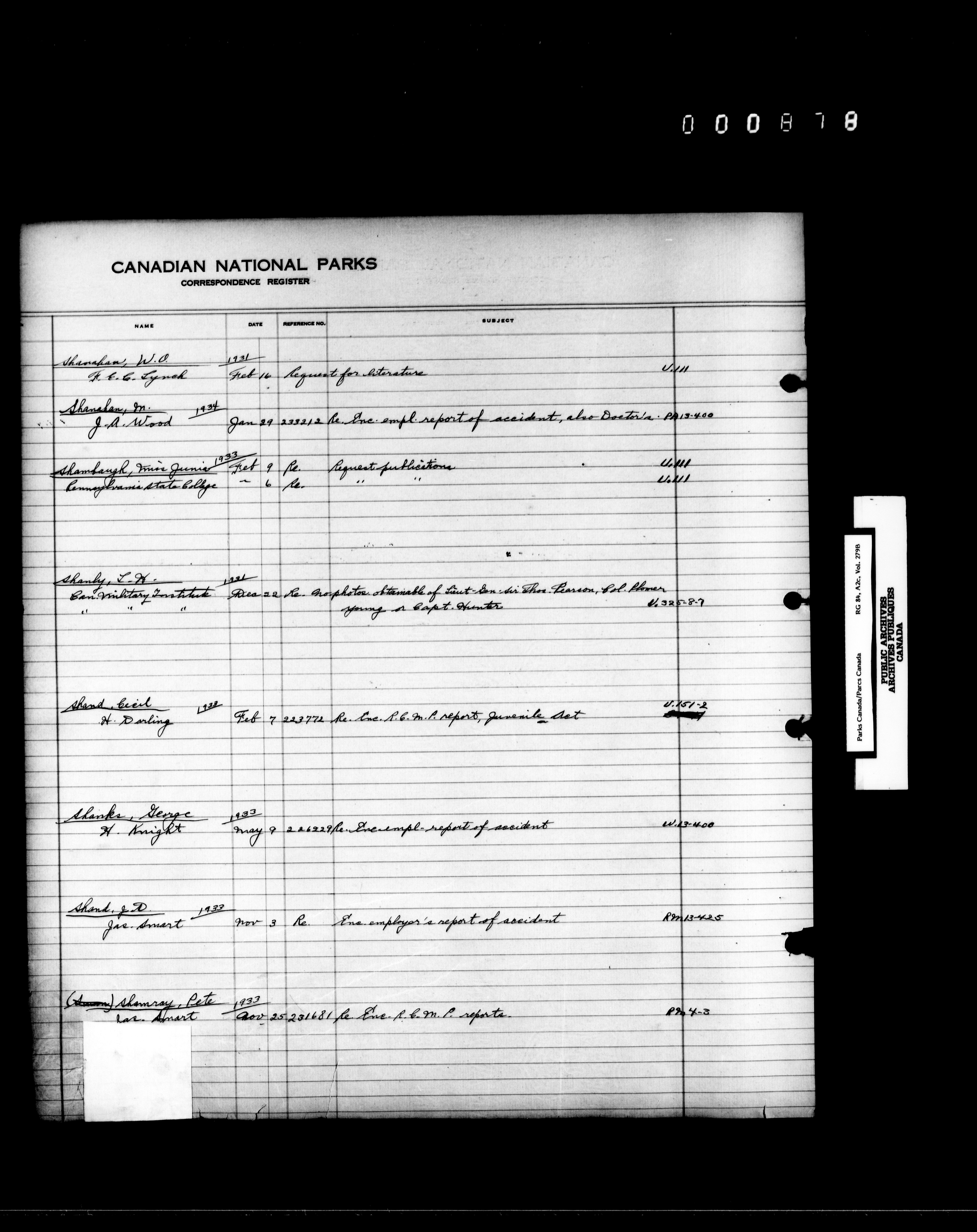 Dominion Parks Branch central registry system : Correspondence registers covering the remaining years of the Dominion Parks Branch in the old Department of the Interior, 1919-1937 - 7347