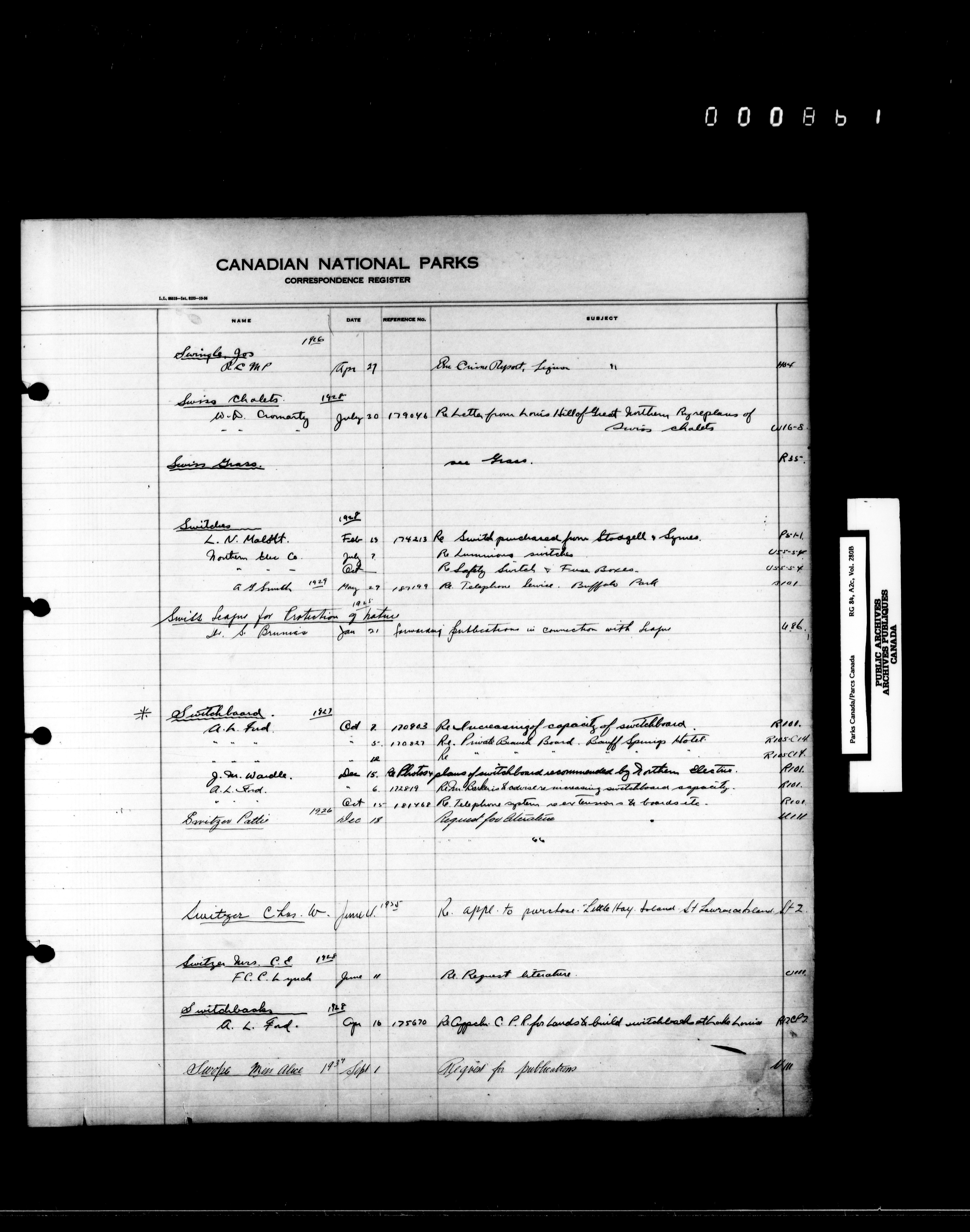 Dominion Parks Branch central registry system : Correspondence registers covering the remaining years of the Dominion Parks Branch in the old Department of the Interior, 1919-1937 - 7348