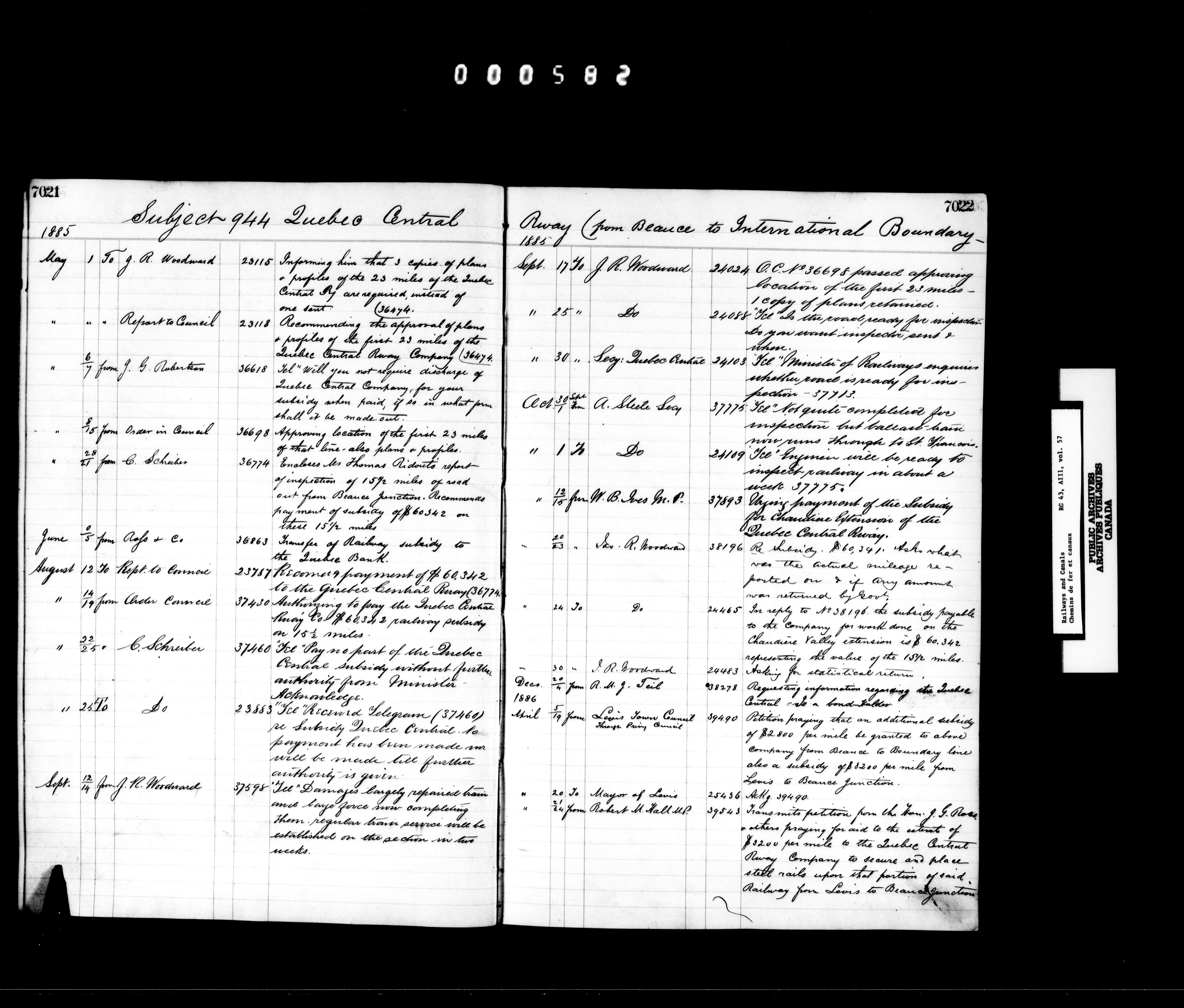 Correspondence acquired and accumulated by the Railway Branch, 1867-1936 - 7353