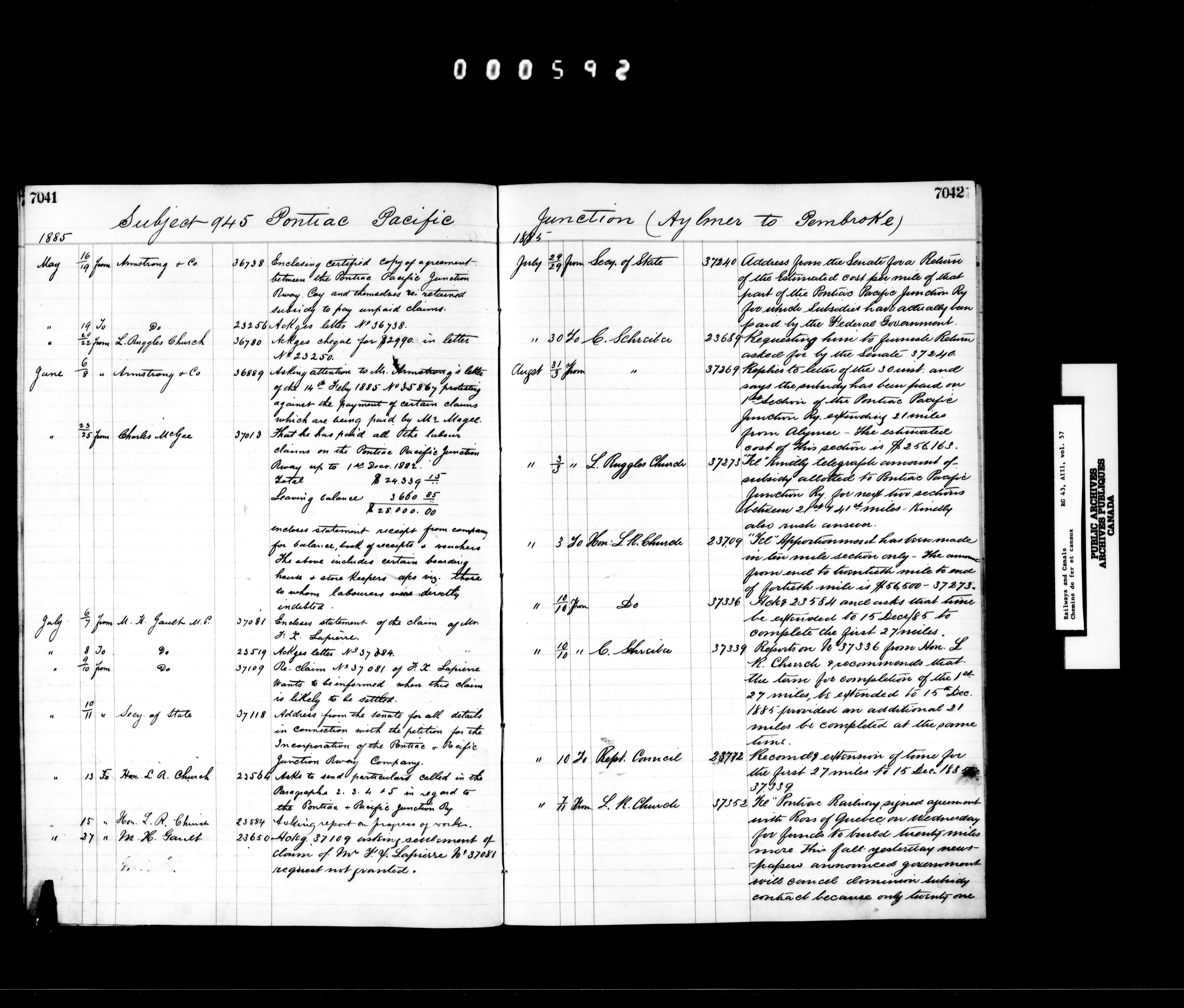 Correspondence acquired and accumulated by the Railway Branch, 1867-1936 - 7353