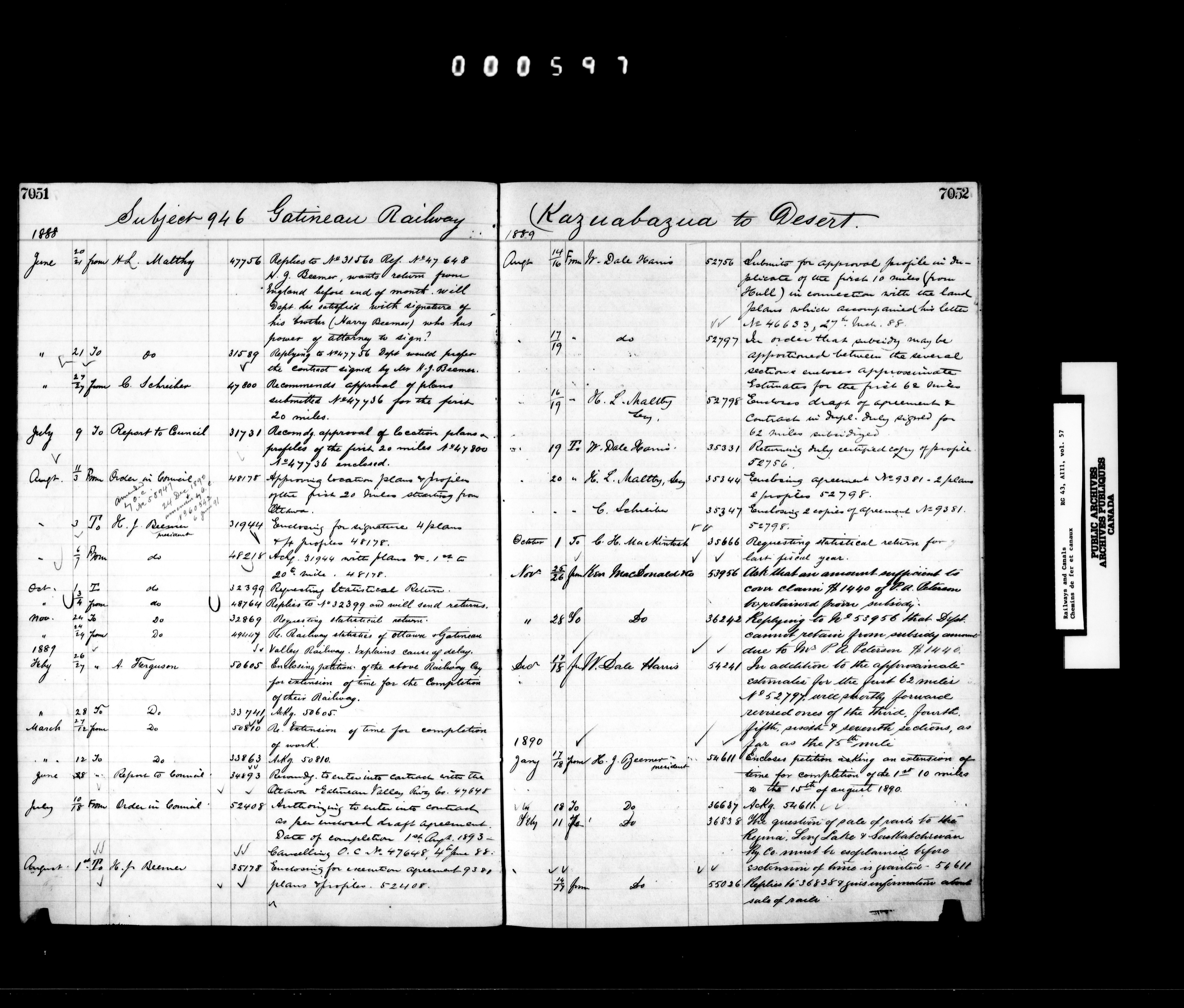 Correspondence acquired and accumulated by the Railway Branch, 1867-1936 - 7353