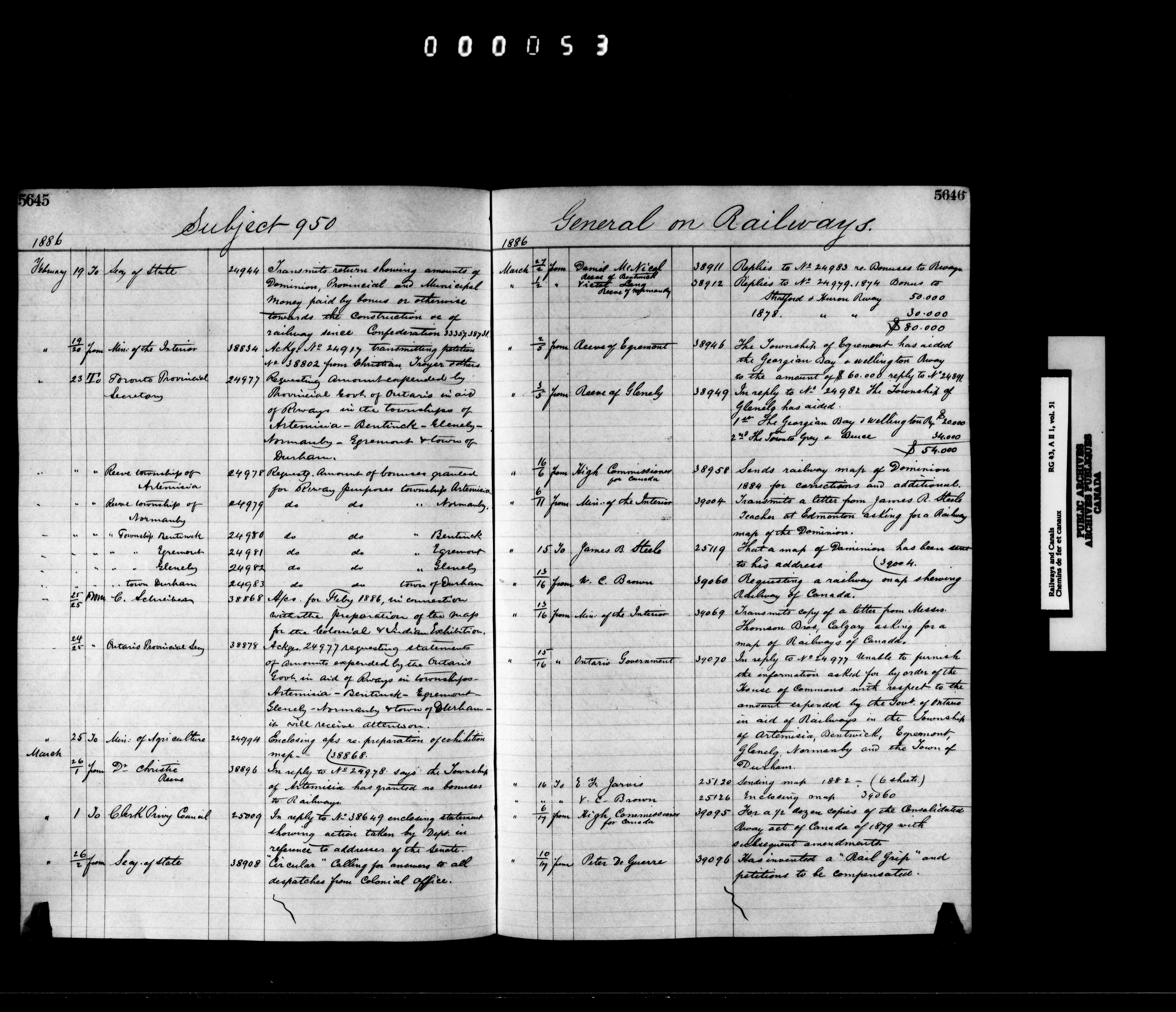 Correspondence acquired and accumulated by the Railway Branch, 1867-1936 - 7353