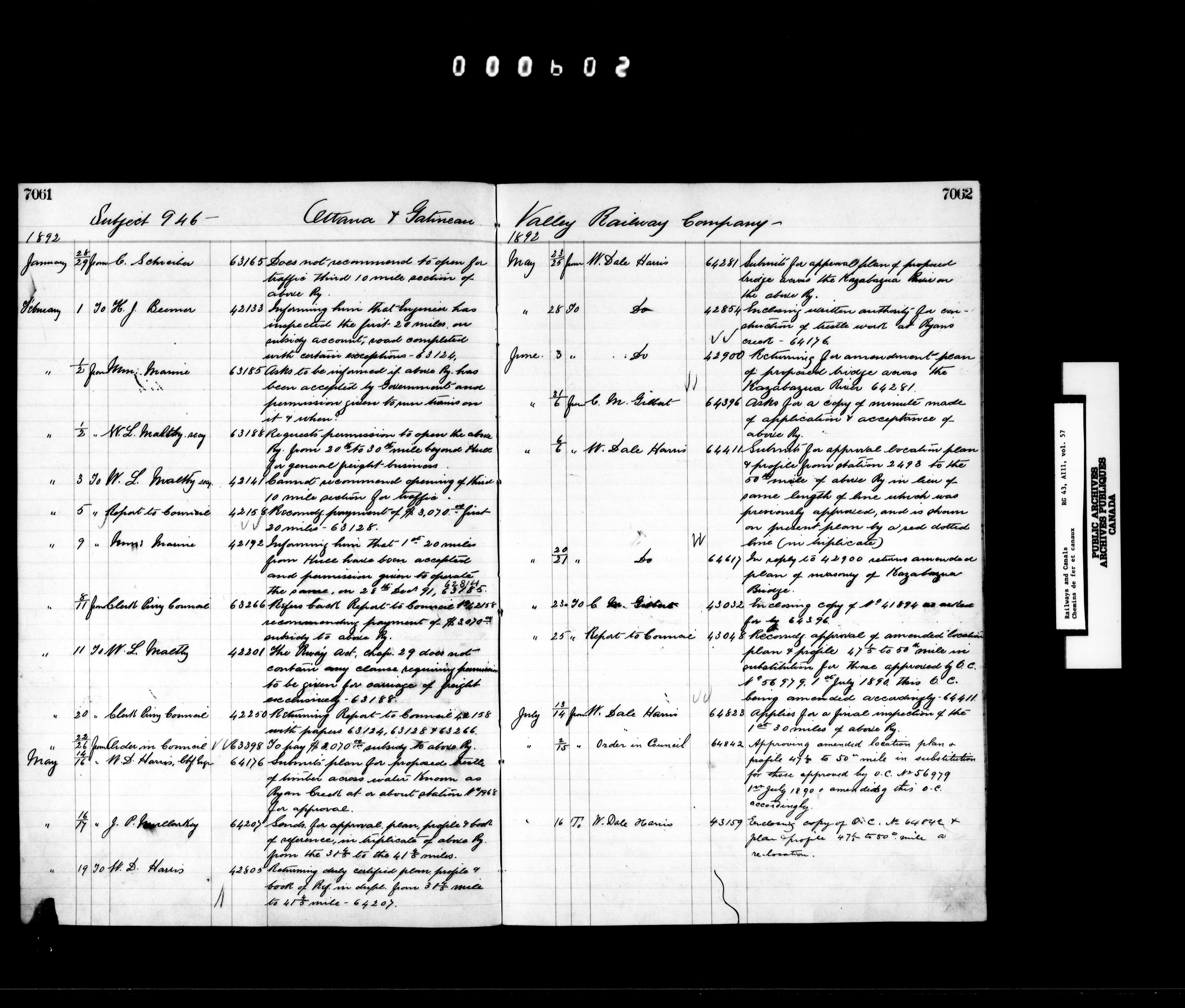 Correspondence acquired and accumulated by the Railway Branch, 1867-1936 - 7353