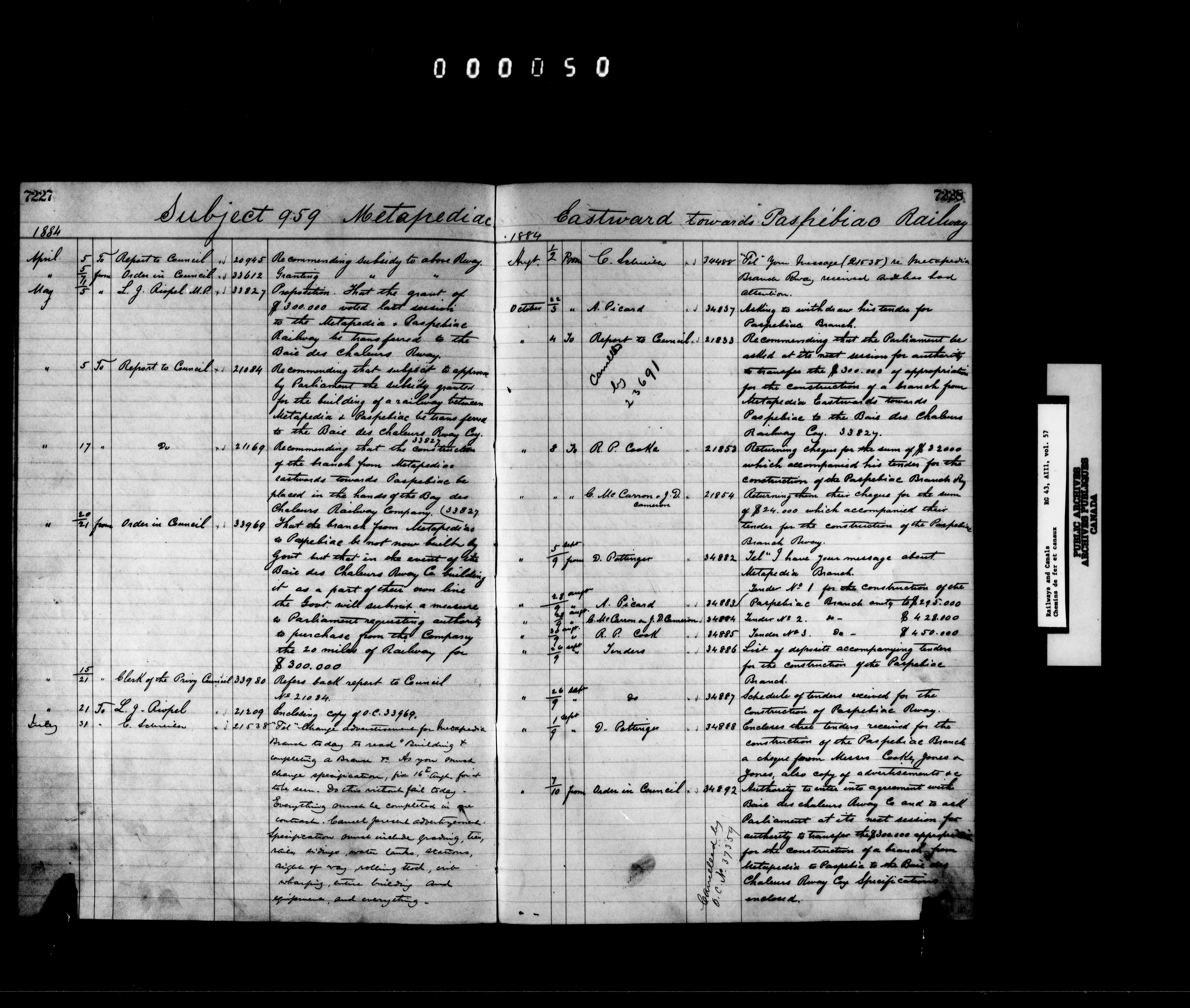 Correspondence acquired and accumulated by the Railway Branch, 1867-1936 - 7354