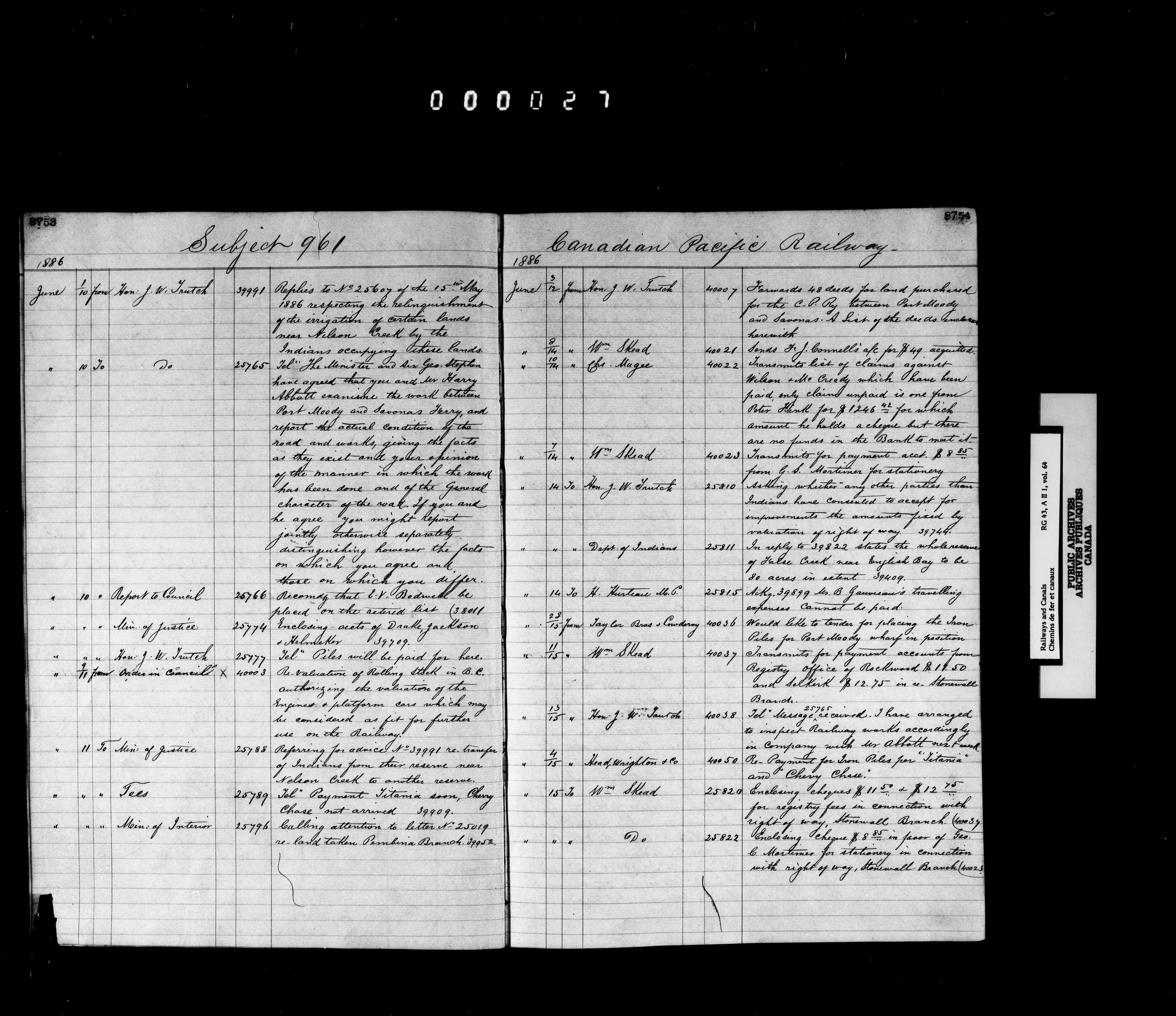 Railway Branch, Registers, Indexes and Journals, 1867-1936 - 7355