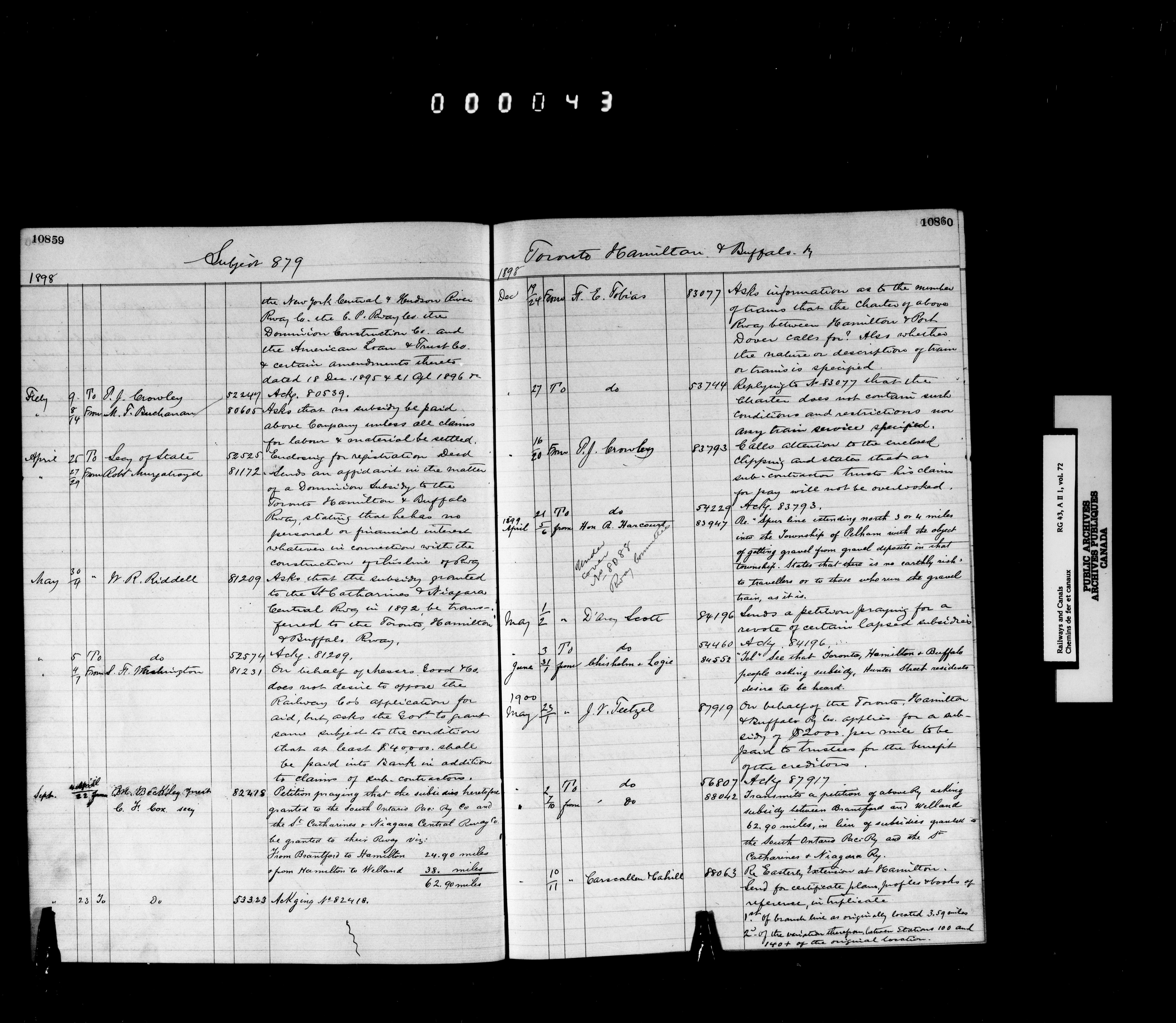 Railway Branch, Registers, Indexes and Journals, 1867-1936 - 7356