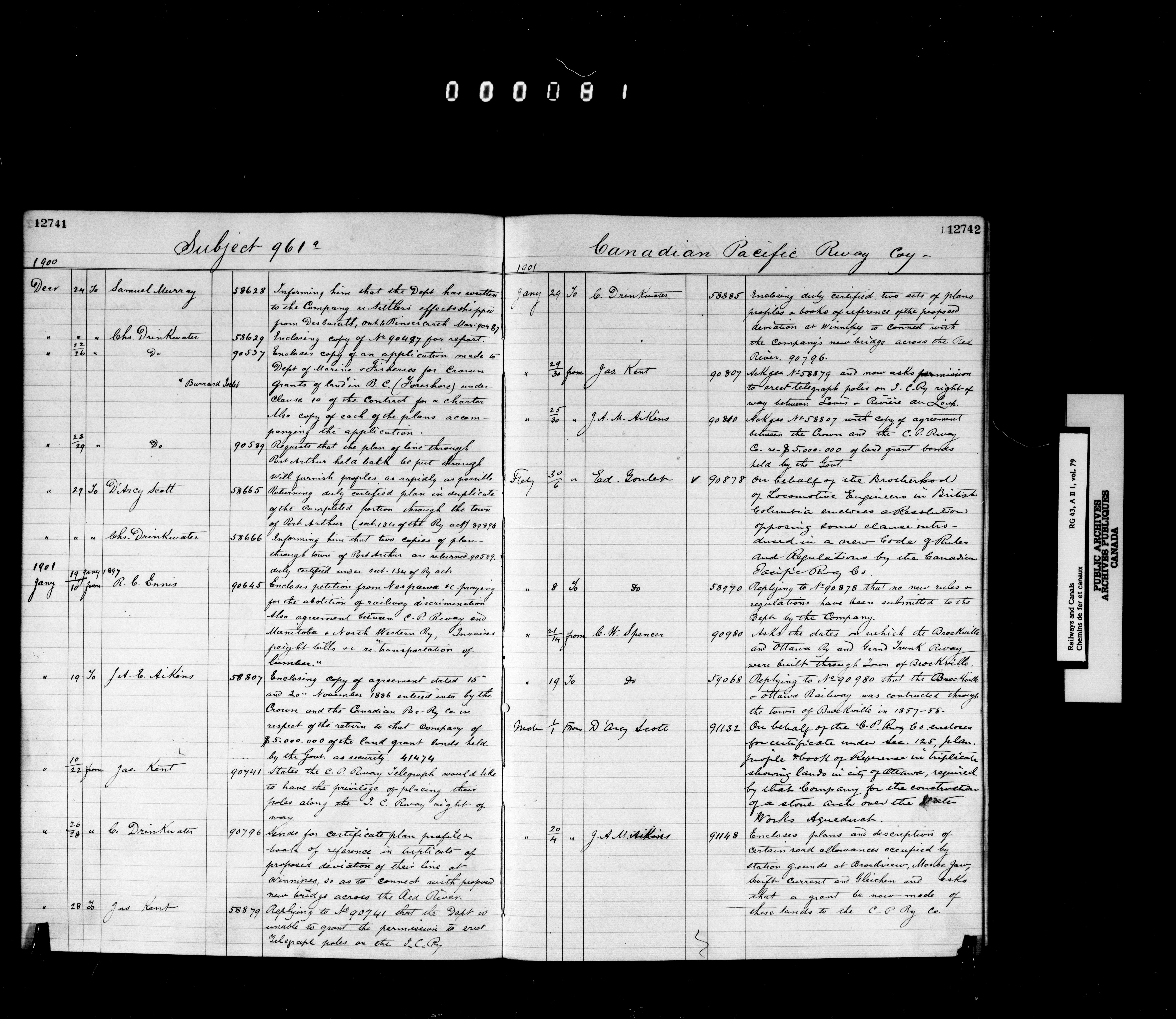 Railway Branch, Registers, Indexes and Journals, 1867-1936 - 7357