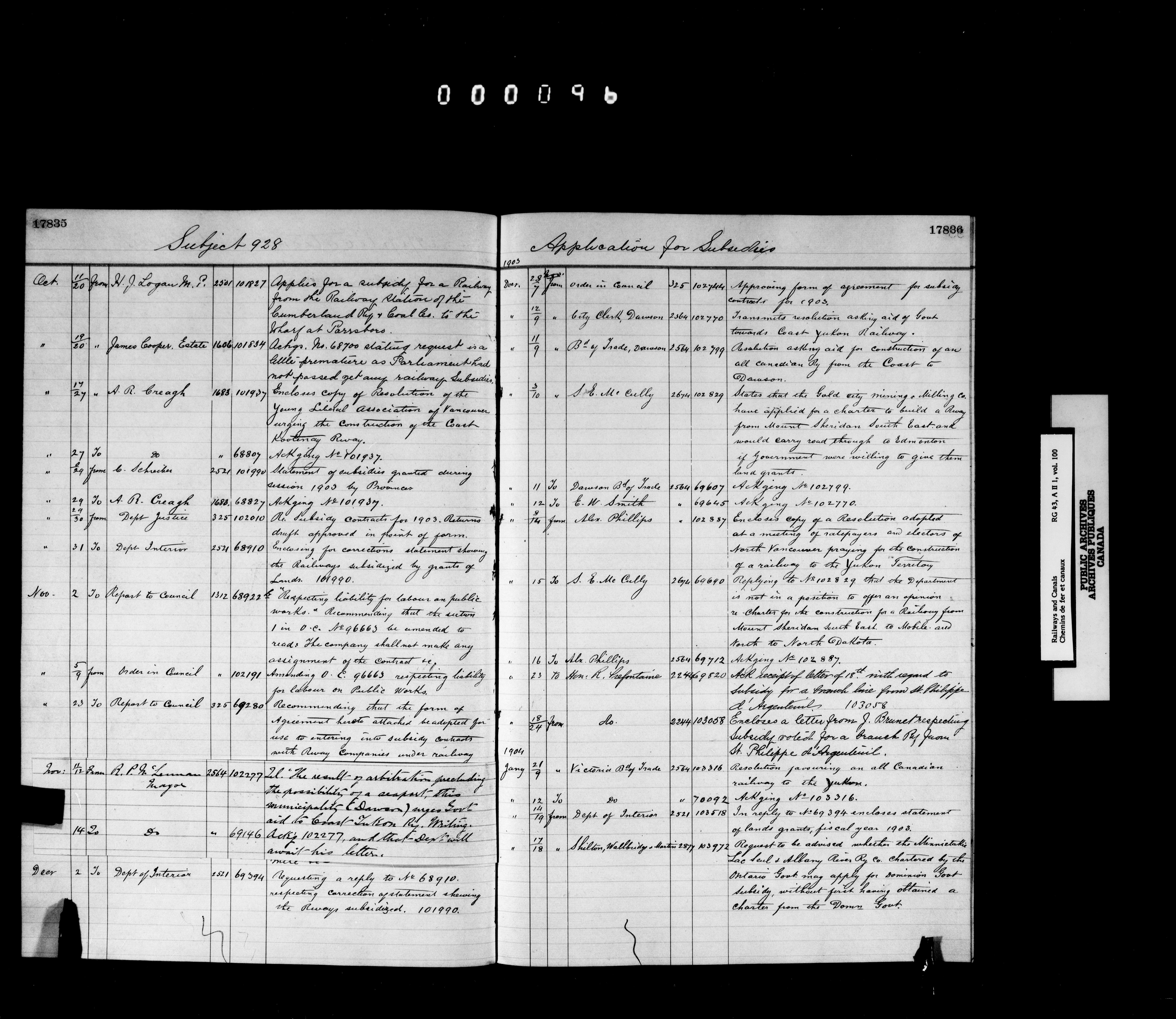 Railway Branch, Registers, Indexes and Journals, 1867-1936 - 7359