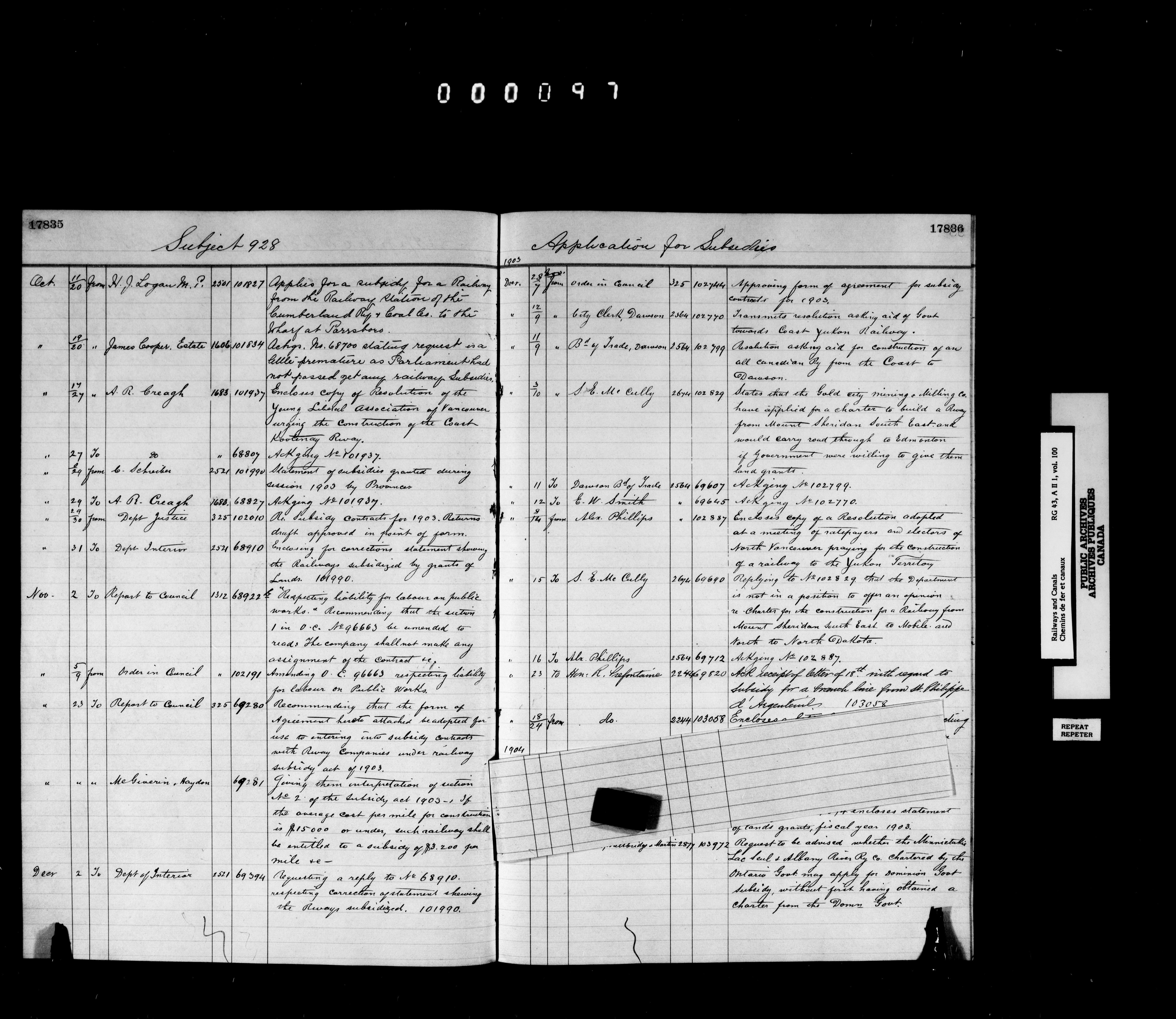 Railway Branch, Registers, Indexes and Journals, 1867-1936 - 7359