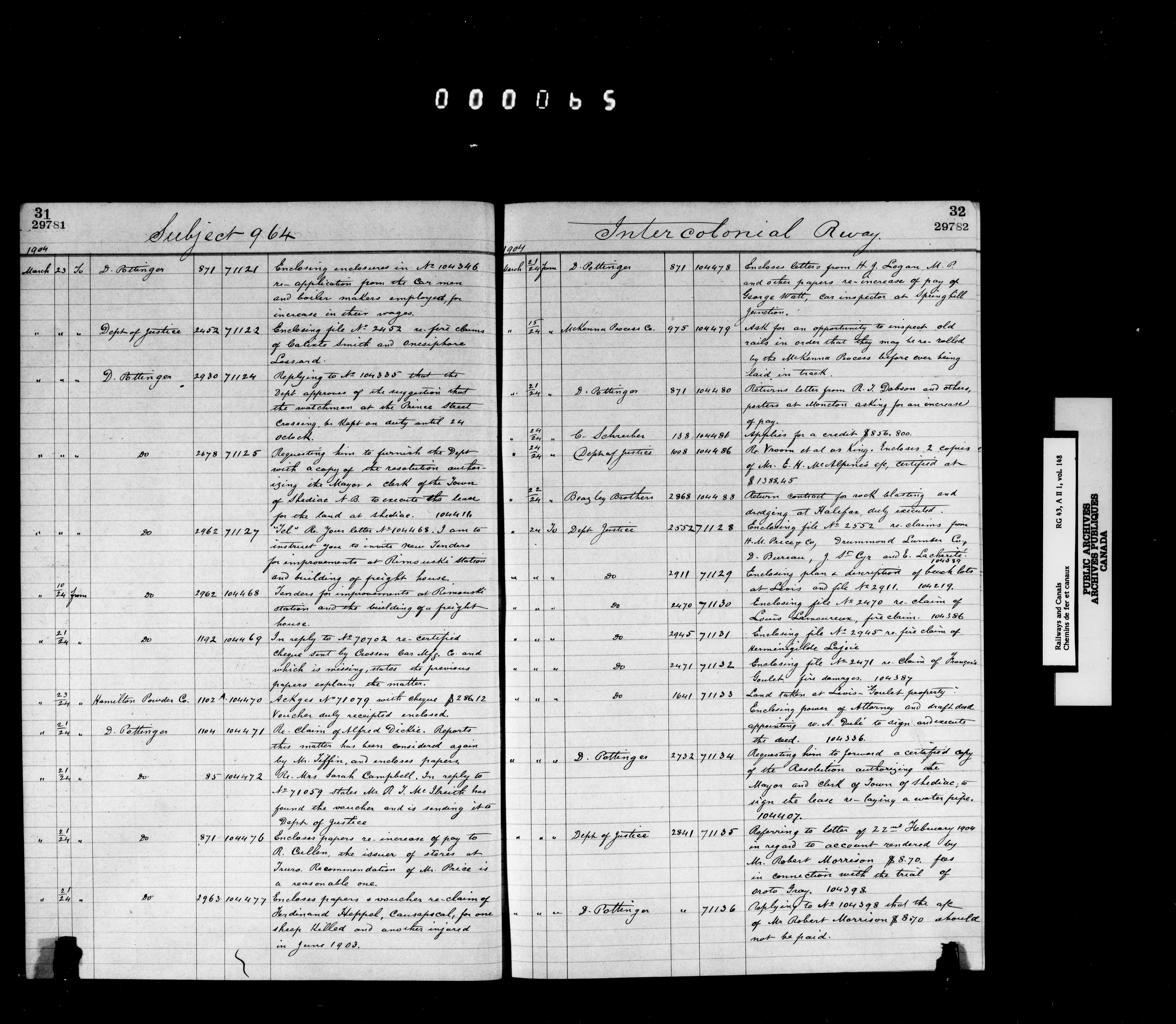 Railway Branch, Registers, Indexes and Journals, 1867-1936 - 7363